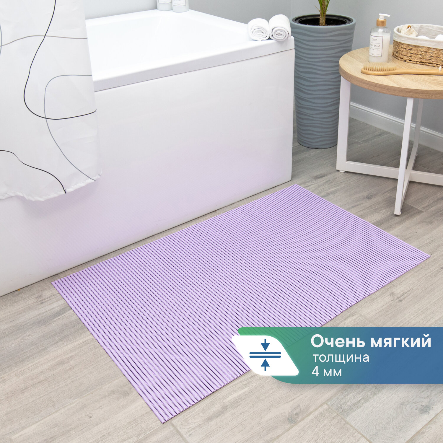 Коврик-дорожка для ванной из вспененного ПВХ 0,65 х 15 м / вилина Напольное покрытие в рулоне лаванда