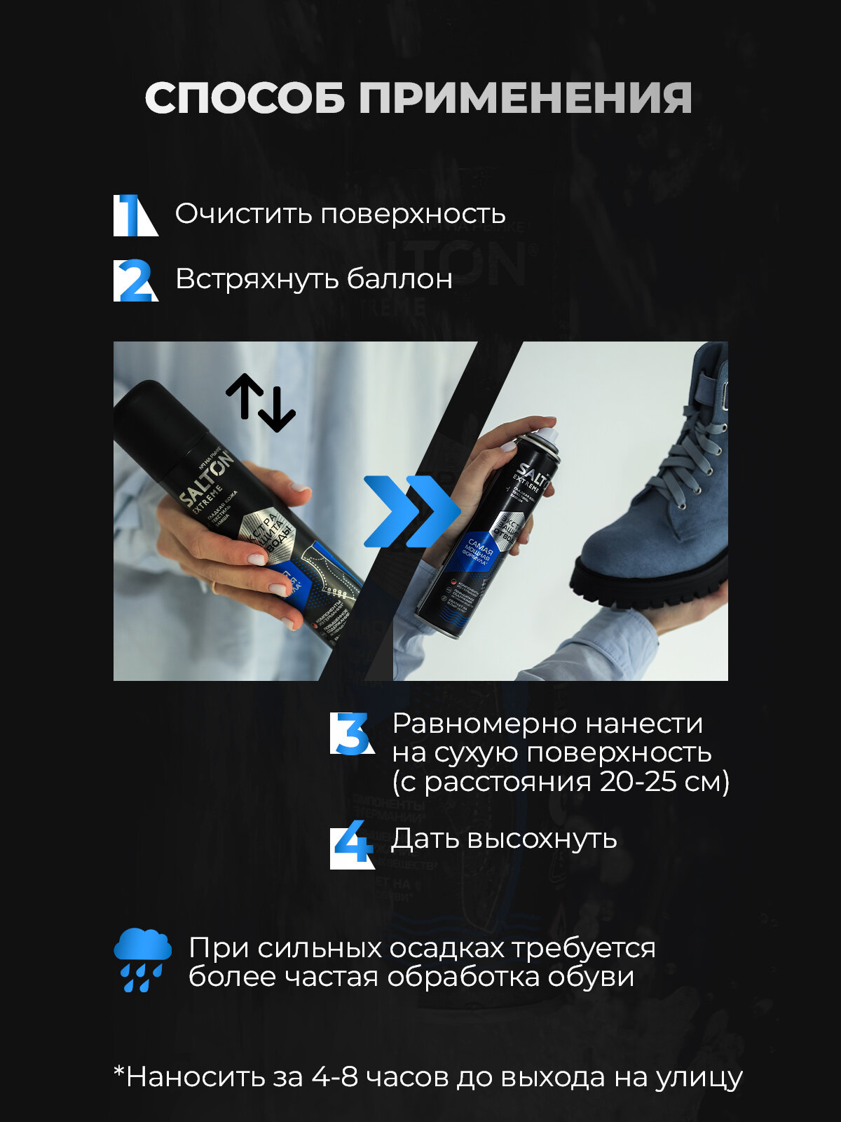 СохранитьВодоотталкивающий спрей для обуви Extreme защита от воды Salton EXTREME пропитка, 190 мл х 2 шт интересное: