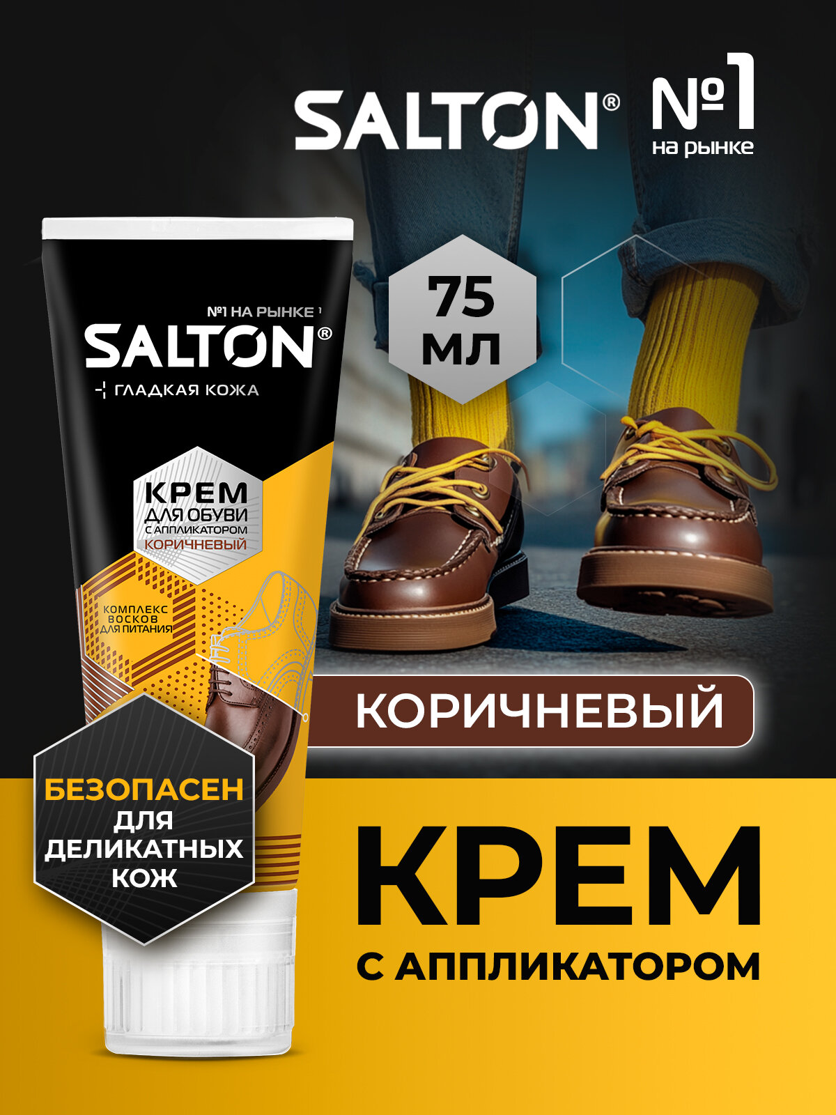 Коричневый крем для обуви в тубе с аппликатором Salton, 75 мл