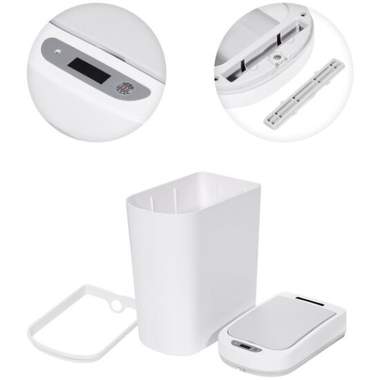 Ведро-контейнер сенсорное мусорное автоматическое для кухни/туалета/сбора отходов/дома/офиса с крышкой/индикатором разряда батареи и датчиком движения, объем 12 литров