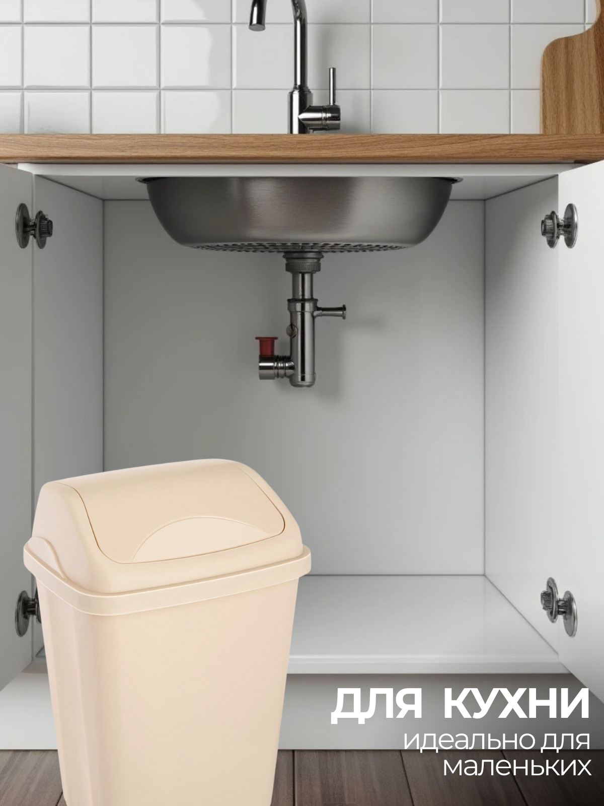 Контейнер для мусора Ultra с плавающей крышкой Мусорное ведро 26 л. цвет -ванильно-бежевый .