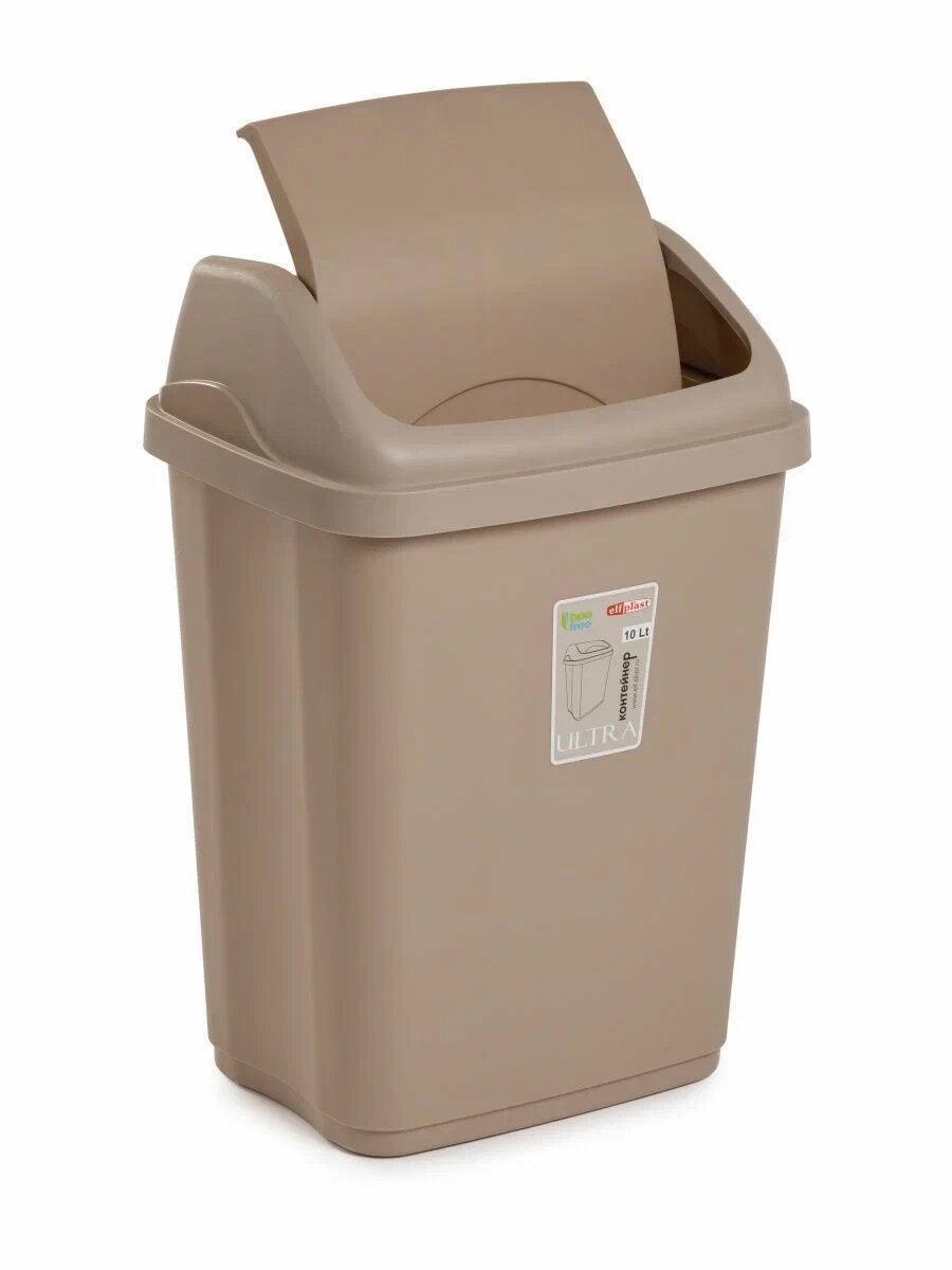 Купить Мусорное ведро elfplast "Ultra" с крышкой пластиковое 10 л, (серо-коричневый) 589