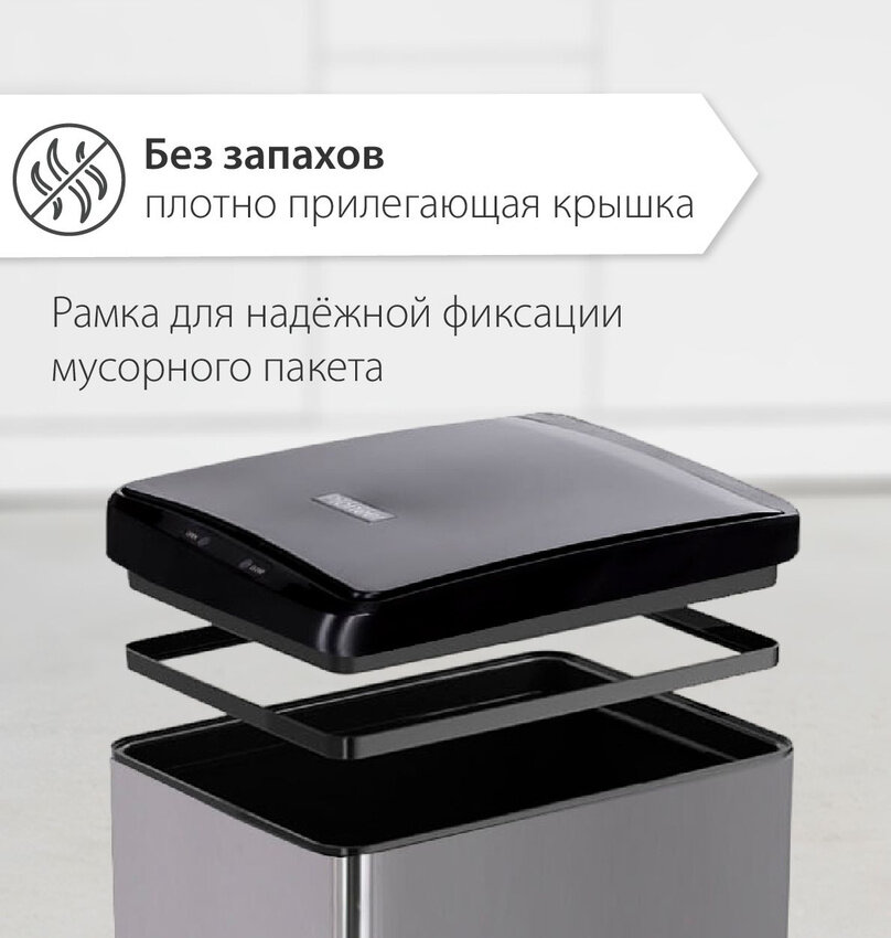 Сенсорное бесконтактное мусорное ведро Pioneer с защитным покрытием от отпечатков пальцев, 2 режима открытия крышки, 42л интересное:
