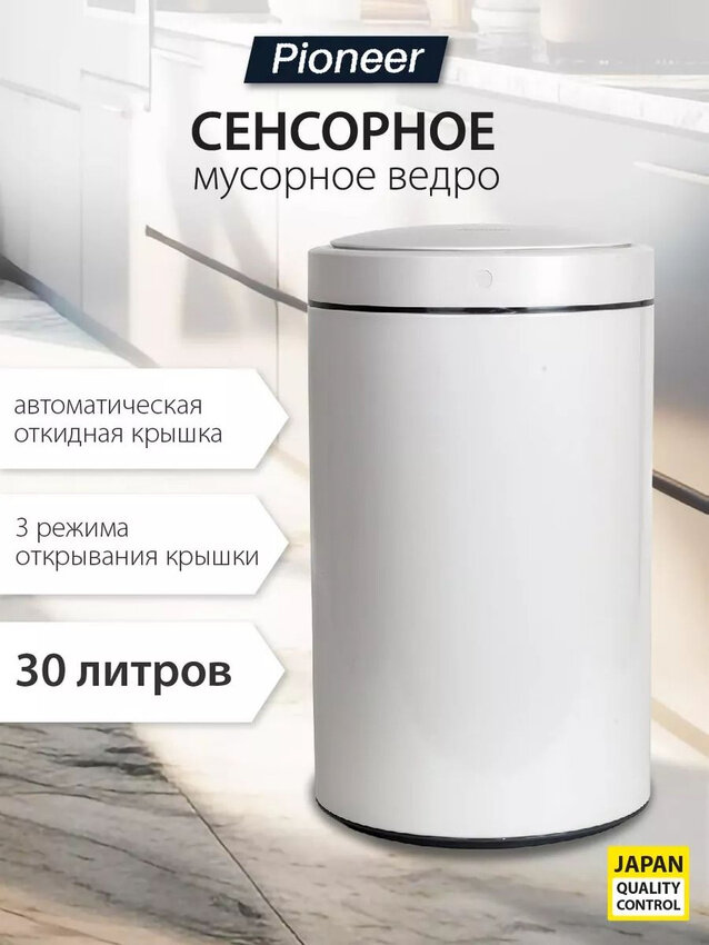 Сенсорное ведро металлическое умное Pioneer WB304W 30 литров, 3 режима интересное: