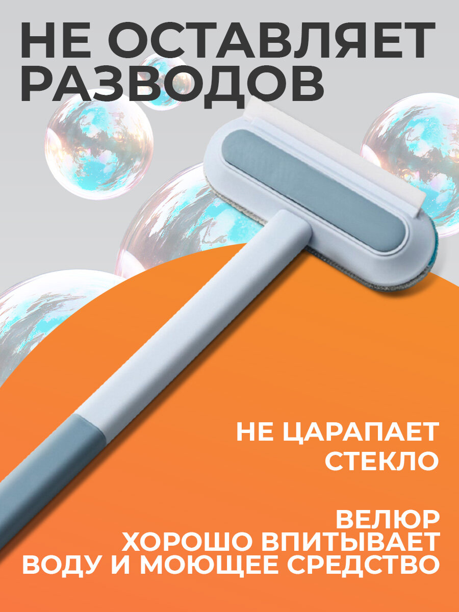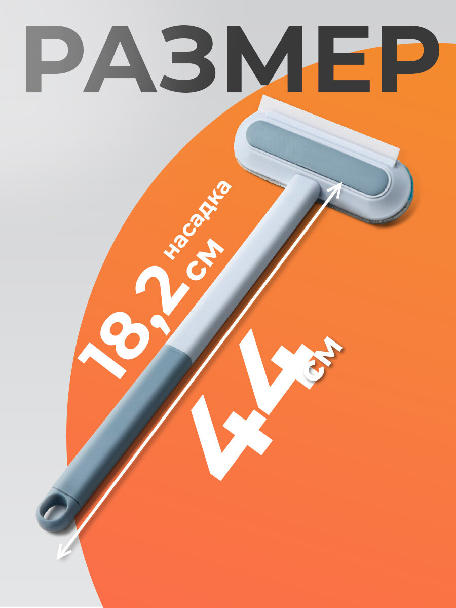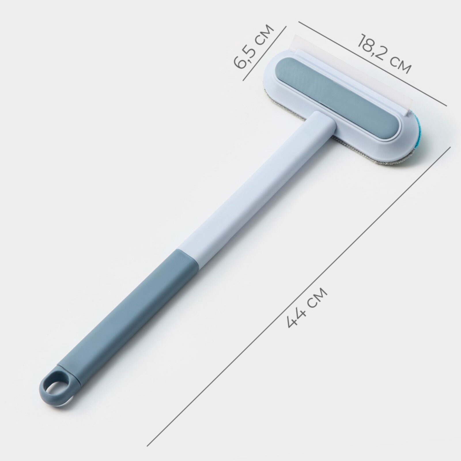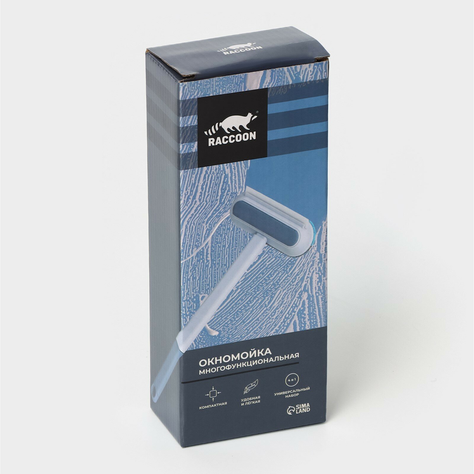 Щётка для окон Raccoon, длина 44 см, велюровая насадка , щётка для одежды , пластиковая щётка, силиконовый сгон 4 в 1, цвет голубой