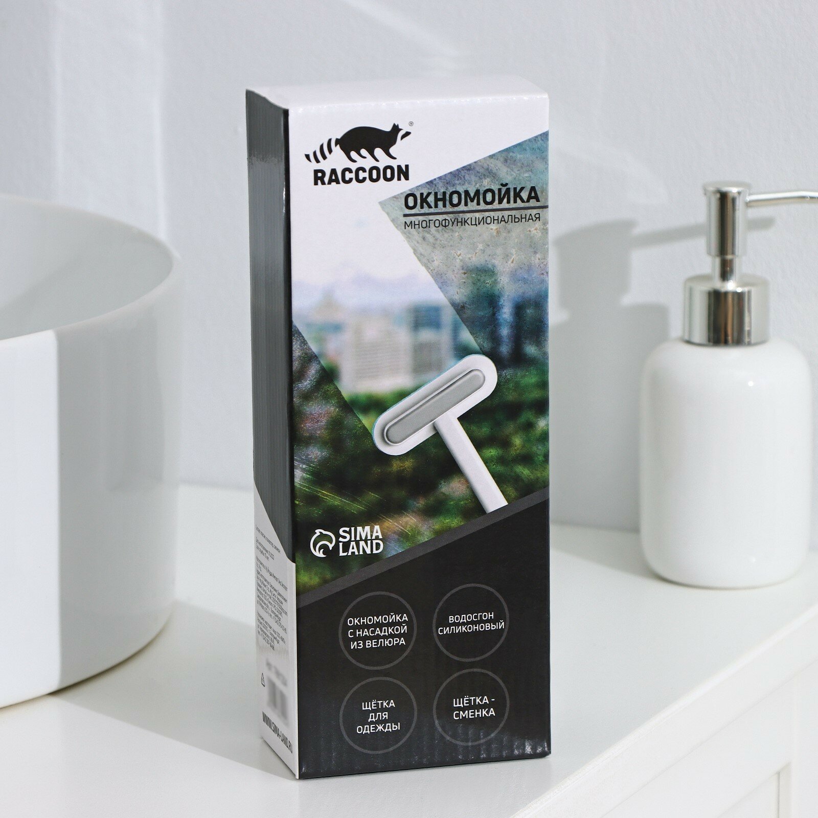 Окномойка Raccoon, велюровая насадка, дополонительная щётка для одежды, дополнительная пластиковая щётка, силиконовый сгон