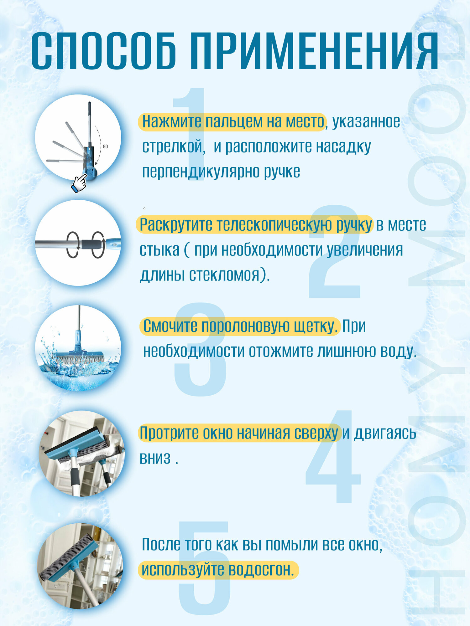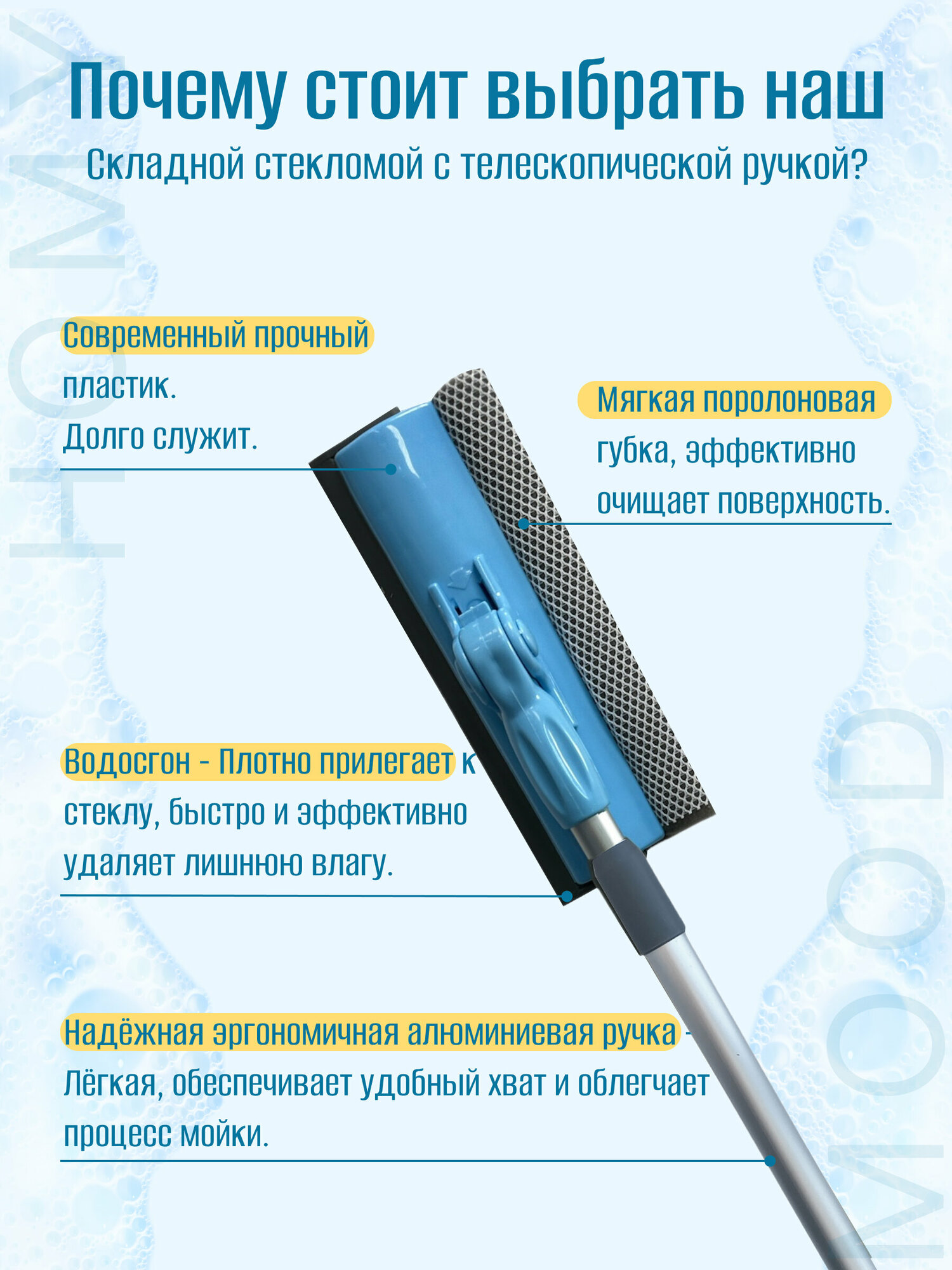 Стекломой Homy Mood складной с телескопической ручкой и водосгоном интересное: