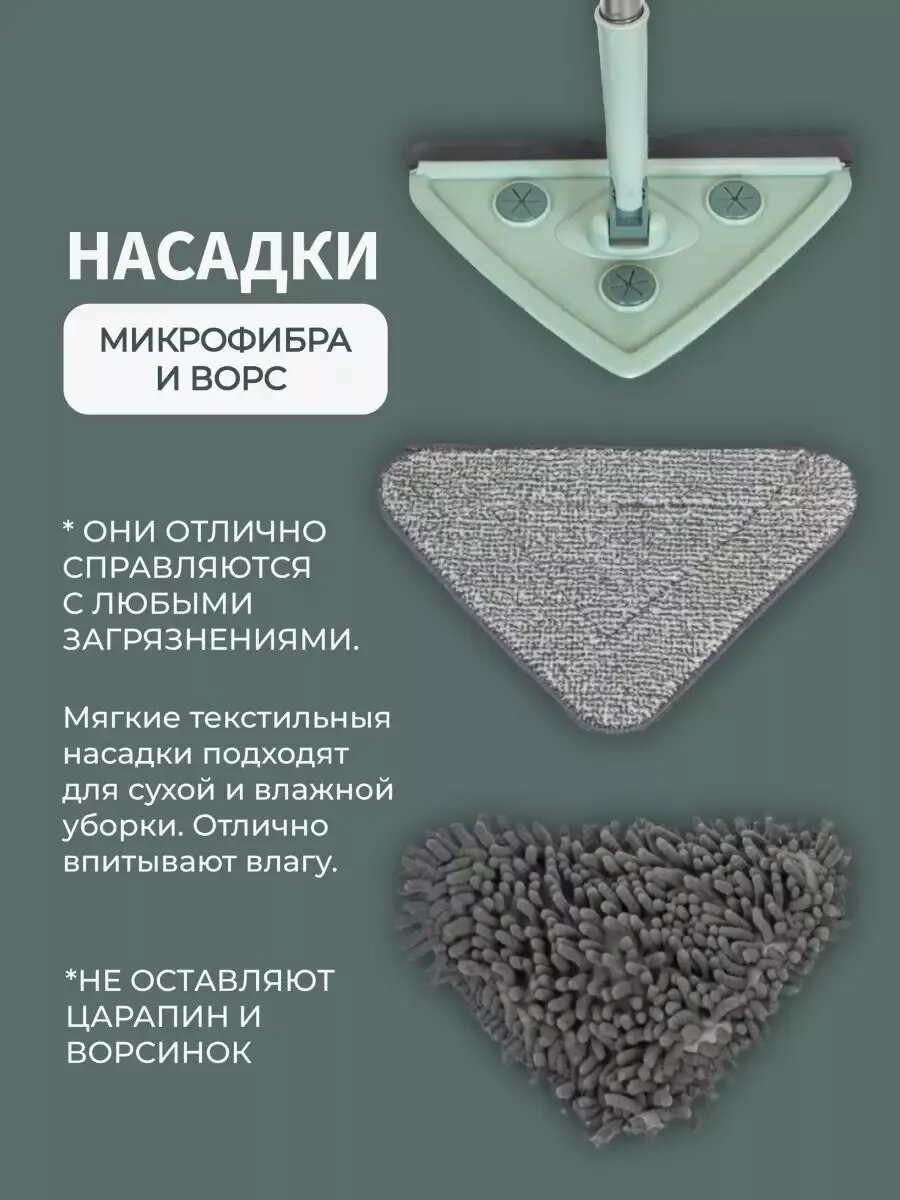Швабра для влажной и сухой уборки с отжимом, 3 насадки (микрофибра), настенный держатель, щетка для чистки мопа