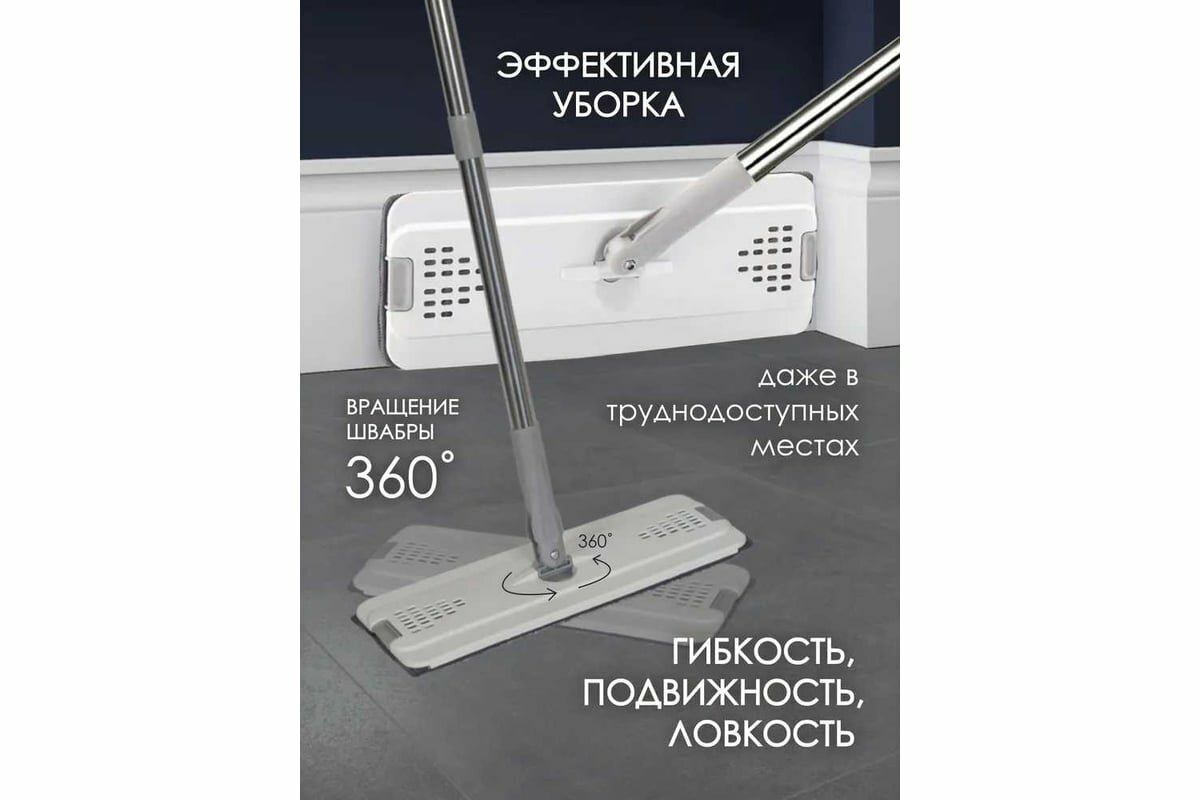 Швабра для влажной и сухой уборки с отжимом, 3 насадки (микрофибра), настенный держатель, щетка для чистки мопа
