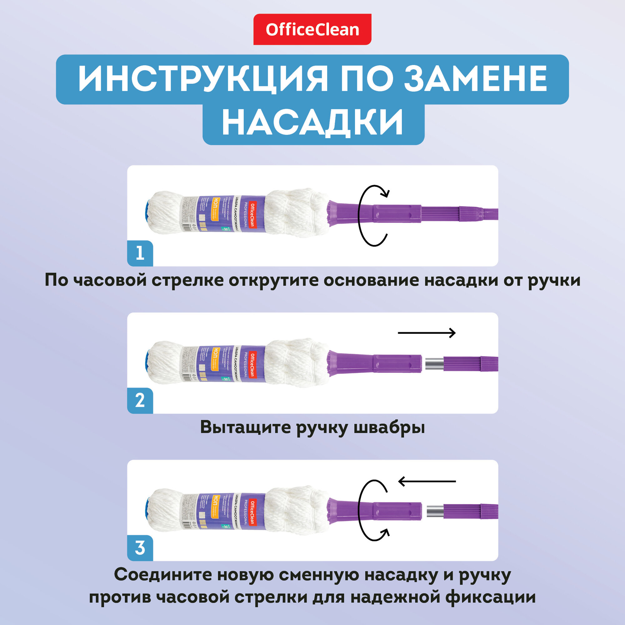 СохранитьНасадка для швабры с отжимом скручивающейся 38 см / тряпка МОП OfficeClean Professional из микрофибры для уборки пола интересное: