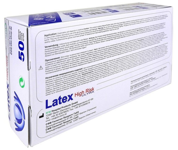 Перчатки латексные SFM смотровые, сверхпрочные, HIGH RISK ULTRA, 25 пар, размер L