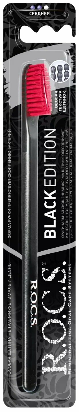 R.O.C.S. зубные щетки И флоссы Зубная щетка Black Edition средняя, 1 шт