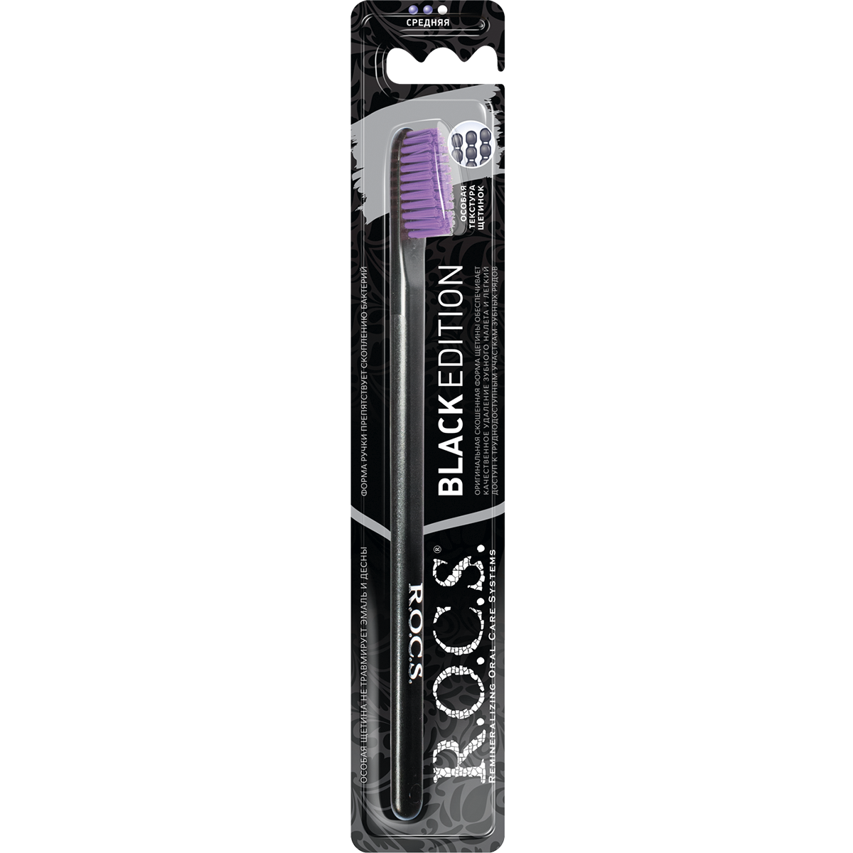 Купить Зубная щетка R.O.C.S. Black Edition Classic, средняя жесткость, черная/фиолетовая