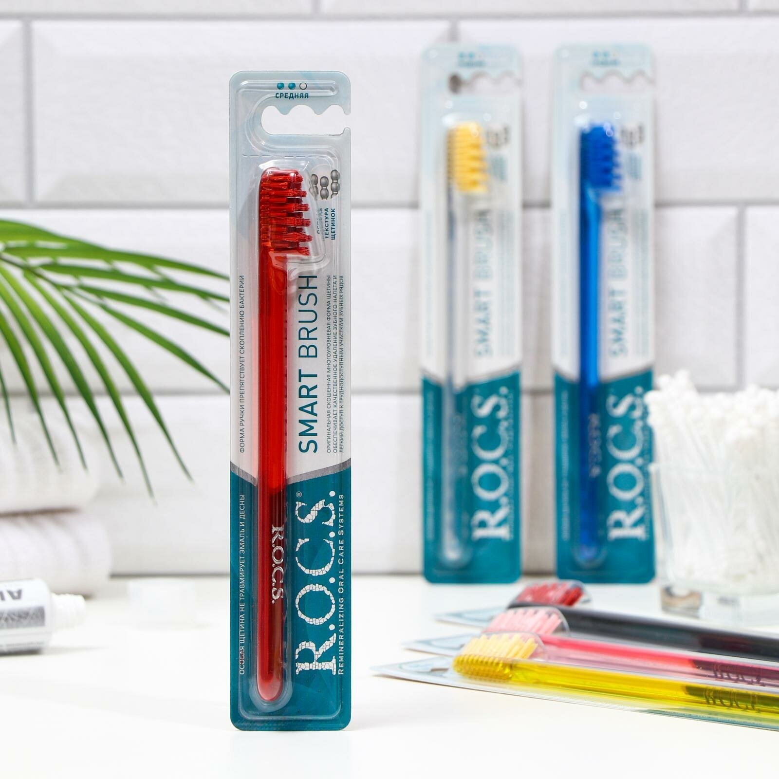 Зубная щетка R.O.C.S. Smart Brush Модельная, средняя жесткость, синяя/синяя