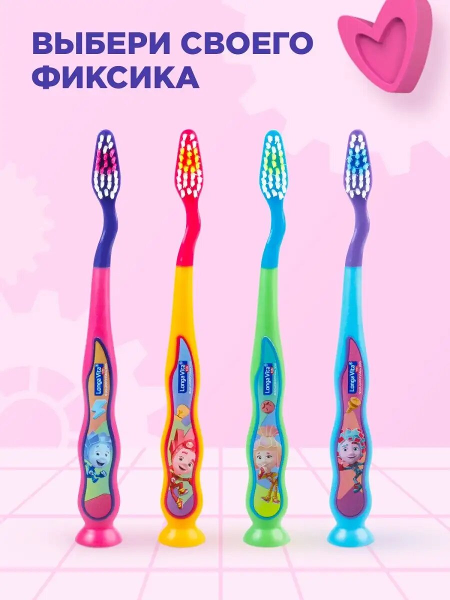 Детская зубная щетка с защитным колпачком, Фиксики, розовая, от 3-х лет, Longa Vita
