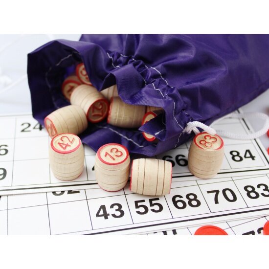| Подробная комплектация | комплект деревянных бочонков – 90 штук, ластиковые жетоны – 100 шт., карточки – 24 шт., тканевой мешок – 1 шт., инструкция |