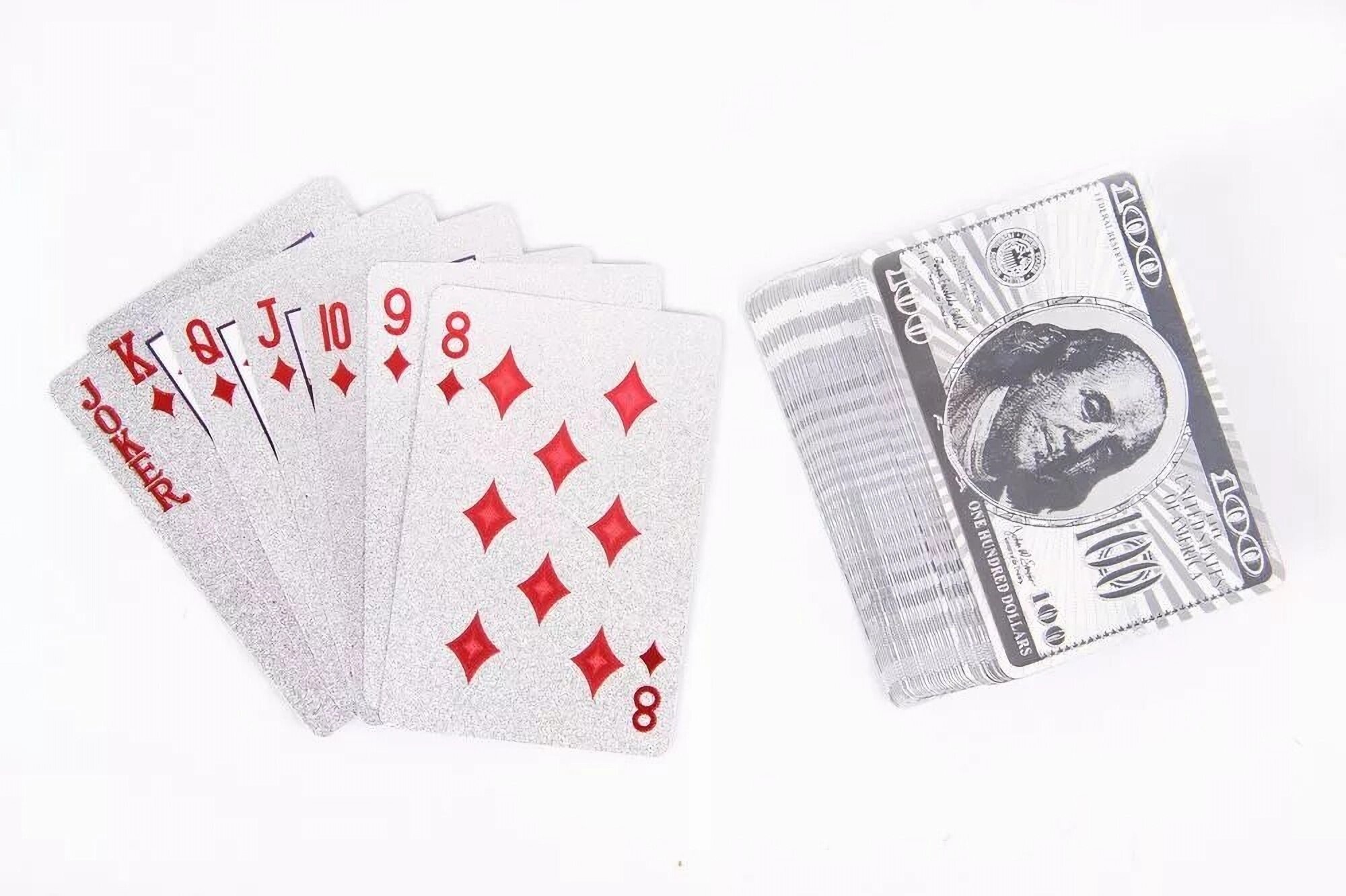 Купить Игральные карты 54 шт, пластик, серебряный цвет, профессиональные