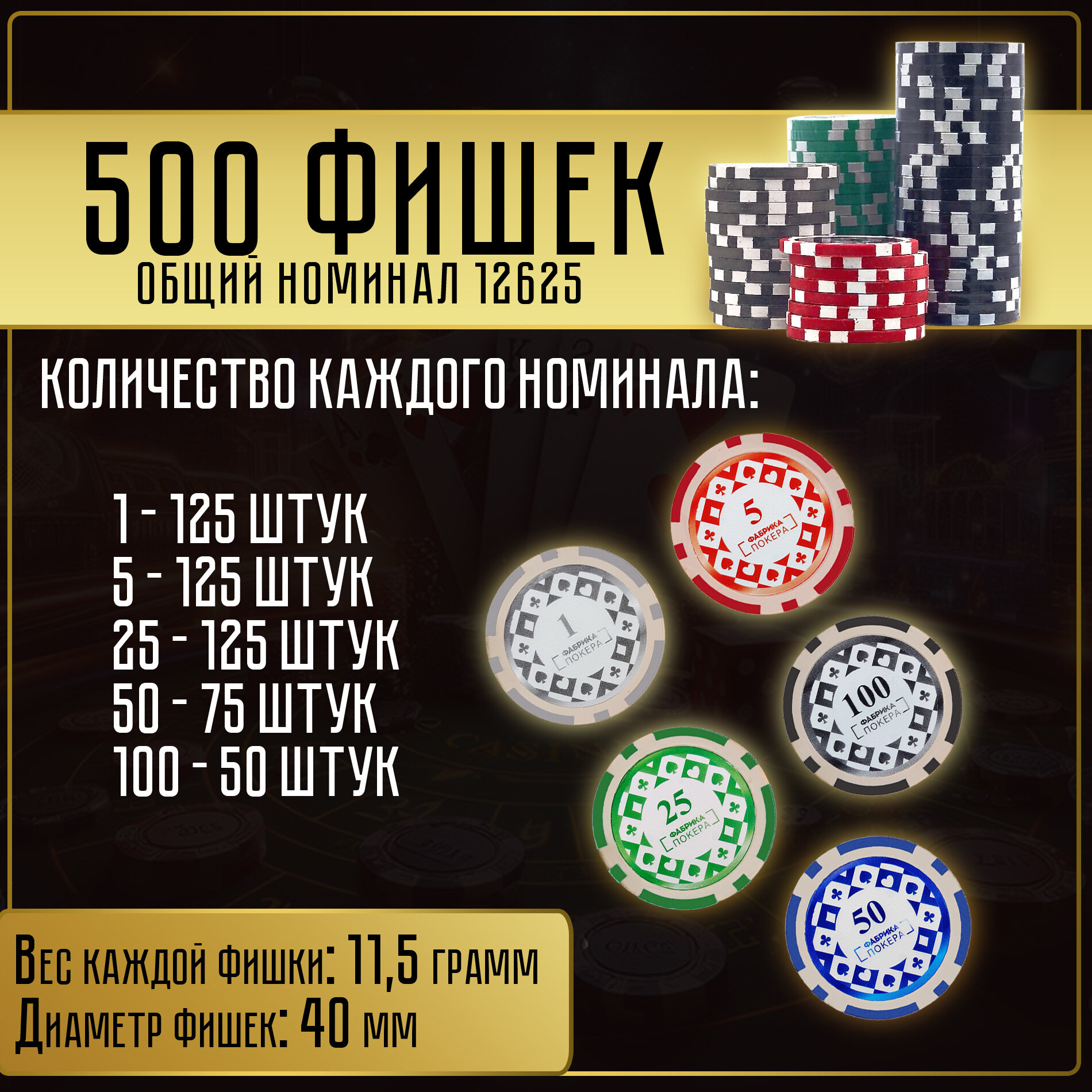 Покерный набор Фабрика Покера 500 фишек 11,5 грамм с номиналом в черном кейсе интересное: