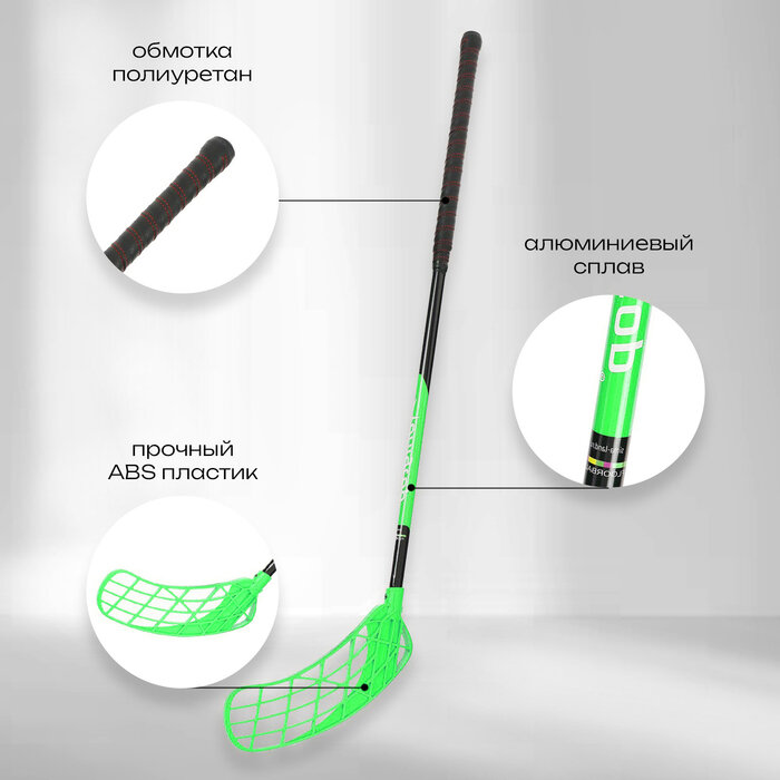 Клюшка для флорбола ONLYTOP, взрослая, правый хват, 95 см, жесткость 20 кг/мм, цвет зелёный