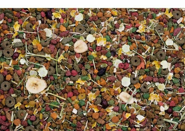 | Состав | производные растительного происхождения, злаки, овощи (сладкий перец 6%, морковь 4%, свекла 2,5%), фрукты (банан 3%, яблоко 3%), экстракты растительного белка, семена, минералы, орехи, дрожжи, FOS, масла и жиры, экстракт календулы, MOS, водоросли, травы, юкка |