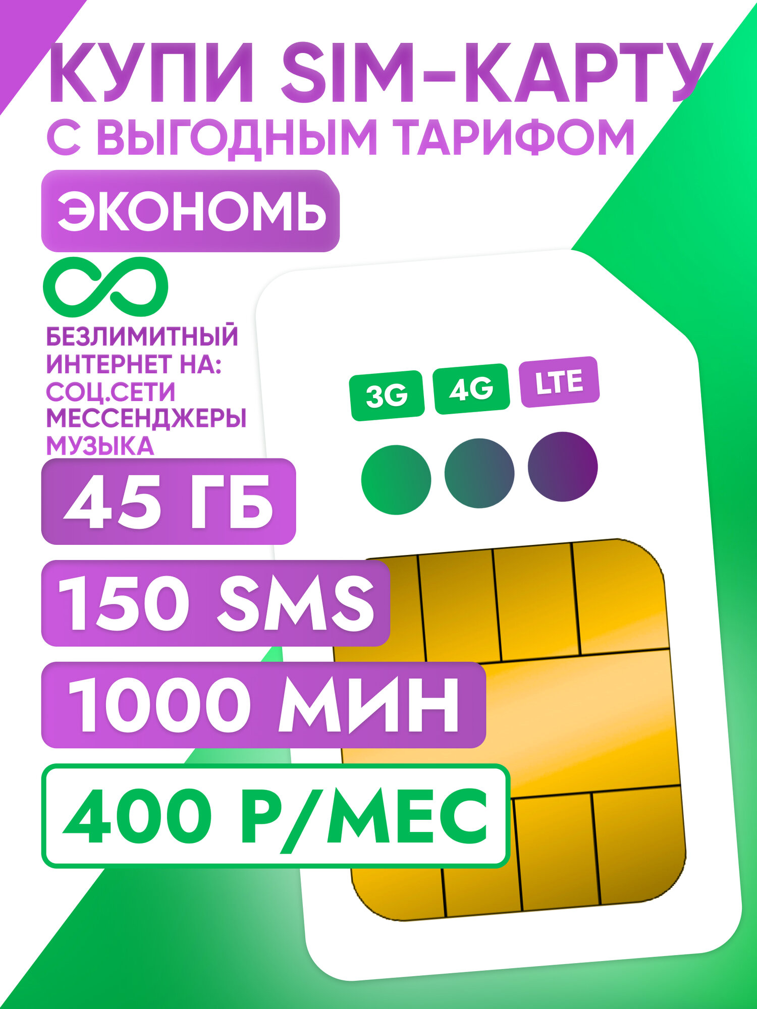 Sim-карта МегаФон 45 ГБ/1000 мин/150 sms/400 руб. Новый номер, который работает по всей России. Непубличный тариф интересное:
