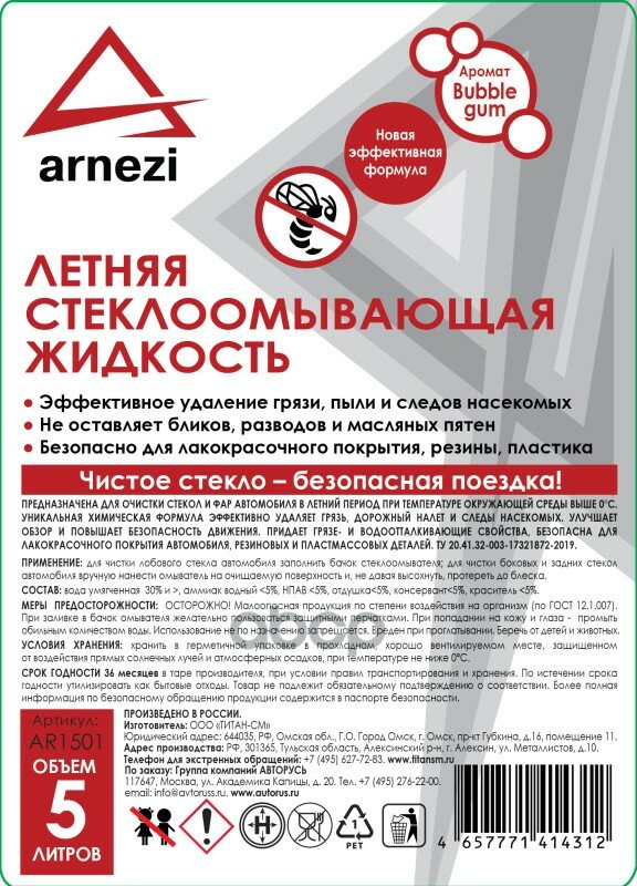 Жидкость Омывателя Летняя Arnezi Пэт Готовая Бабл Гам 5 Л Ar1501 ARNEZI арт. AR1501 интересное: