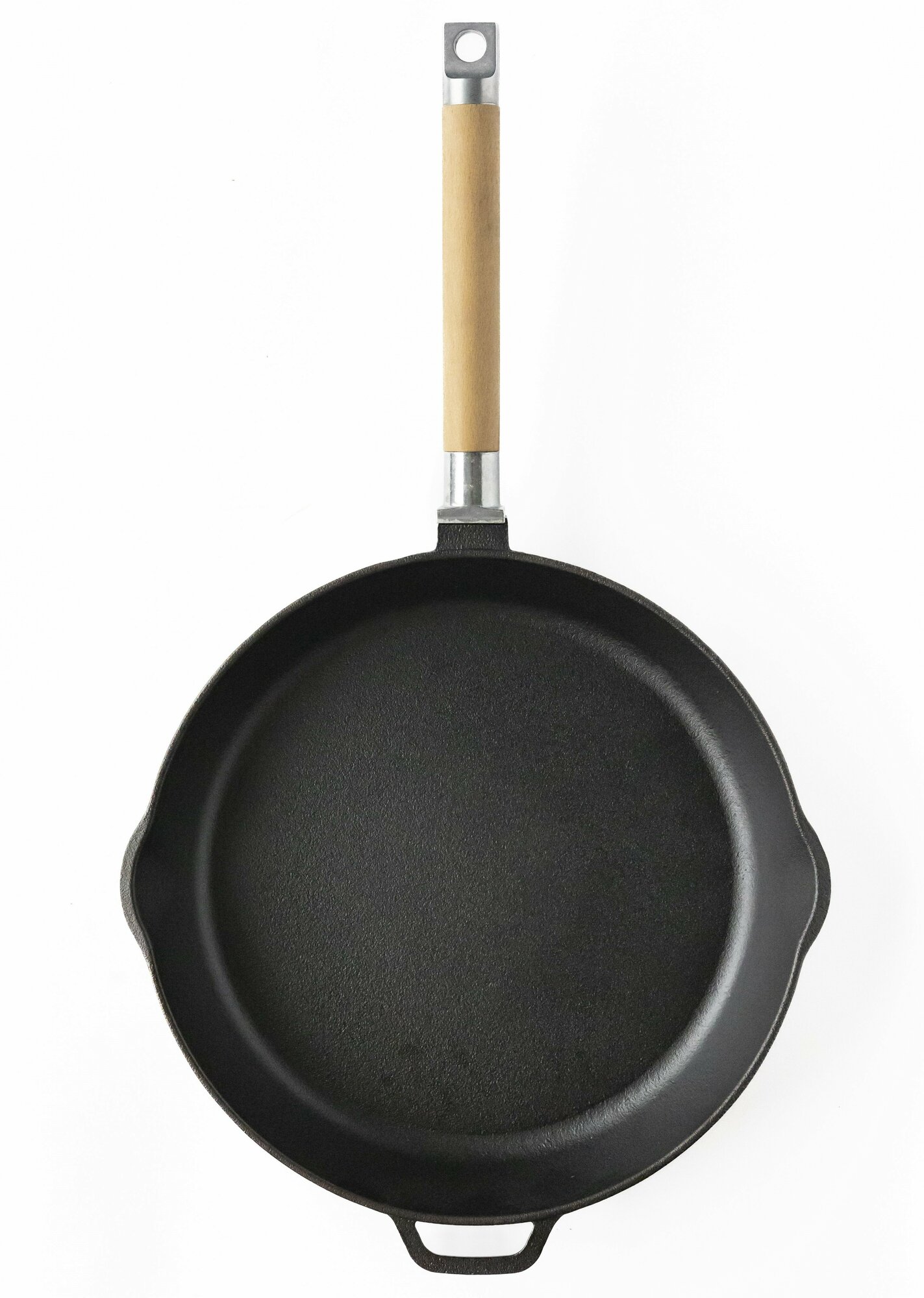 Сковорода чугунная со съемной деревянной ручкой и двумя сливами 24см Гардарика 0224