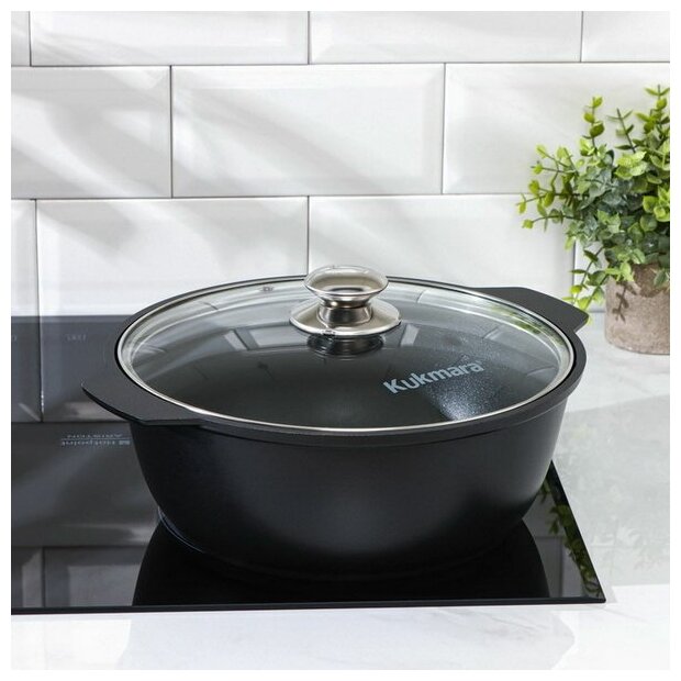 Жаровня KUKMARA, 4 л, d=26, стеклянная крышка, антипригарное покрытие, черный