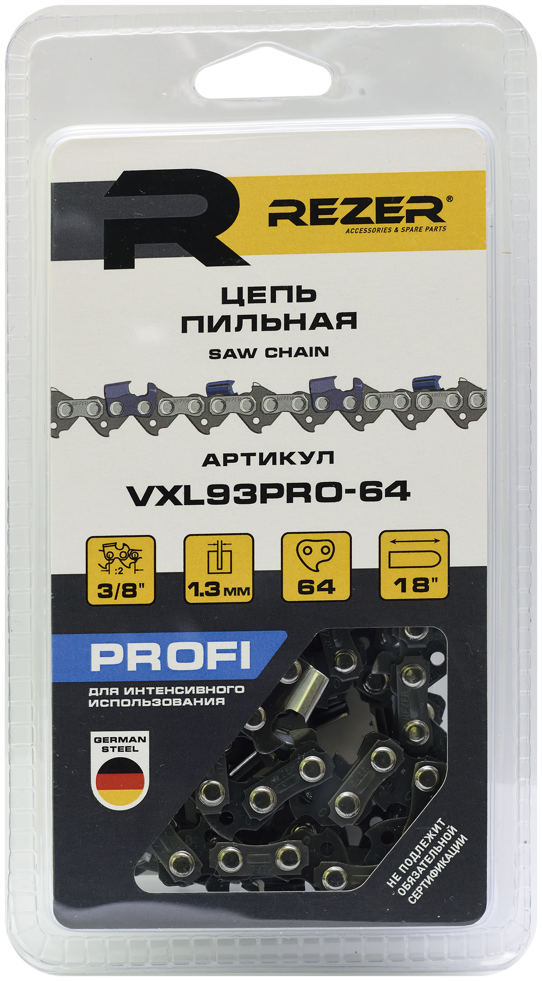 Цепь пильная из немецкой стали REZER (18", 3/8", 1.3 мм, 64 звена) VXL93PRO-64 03.025.00046