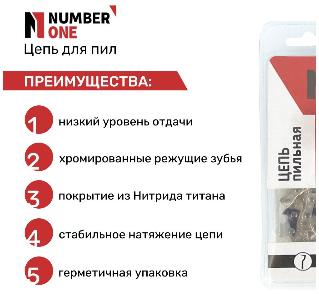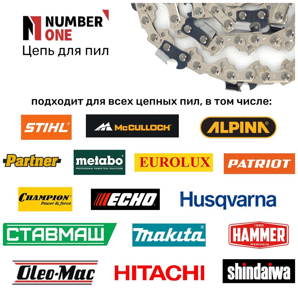 Цепь для бензопилы / цепь для электропилы / цепь пильная NUMBER ONE N1CP (суперзуб), паз 1.3 мм, 72 звеньев, шаг 0.325, шина 18" (45.72 см)