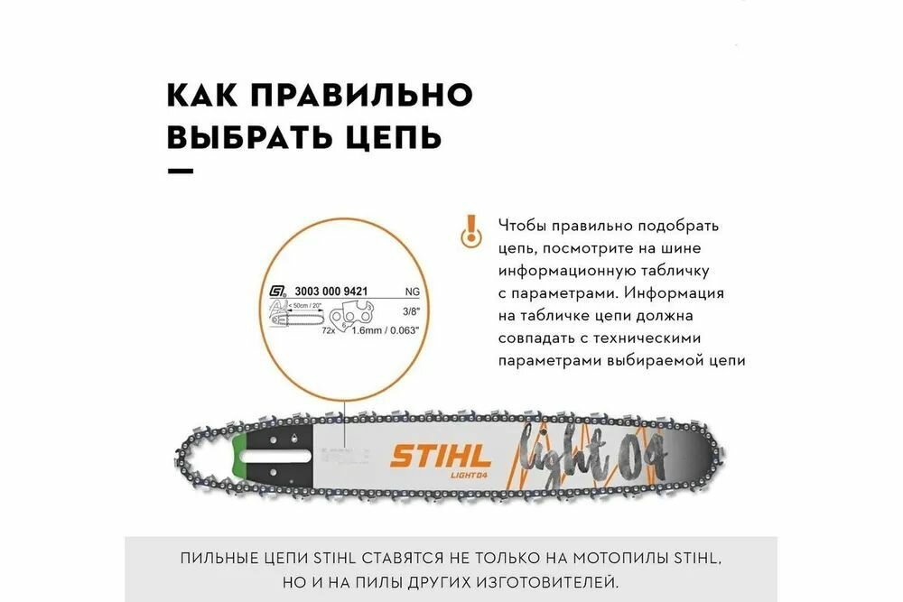 Цепь для бензопил / цепь для пилы / цепь пильная STIHL 3/8", 1.3 мм, 50 звеньев