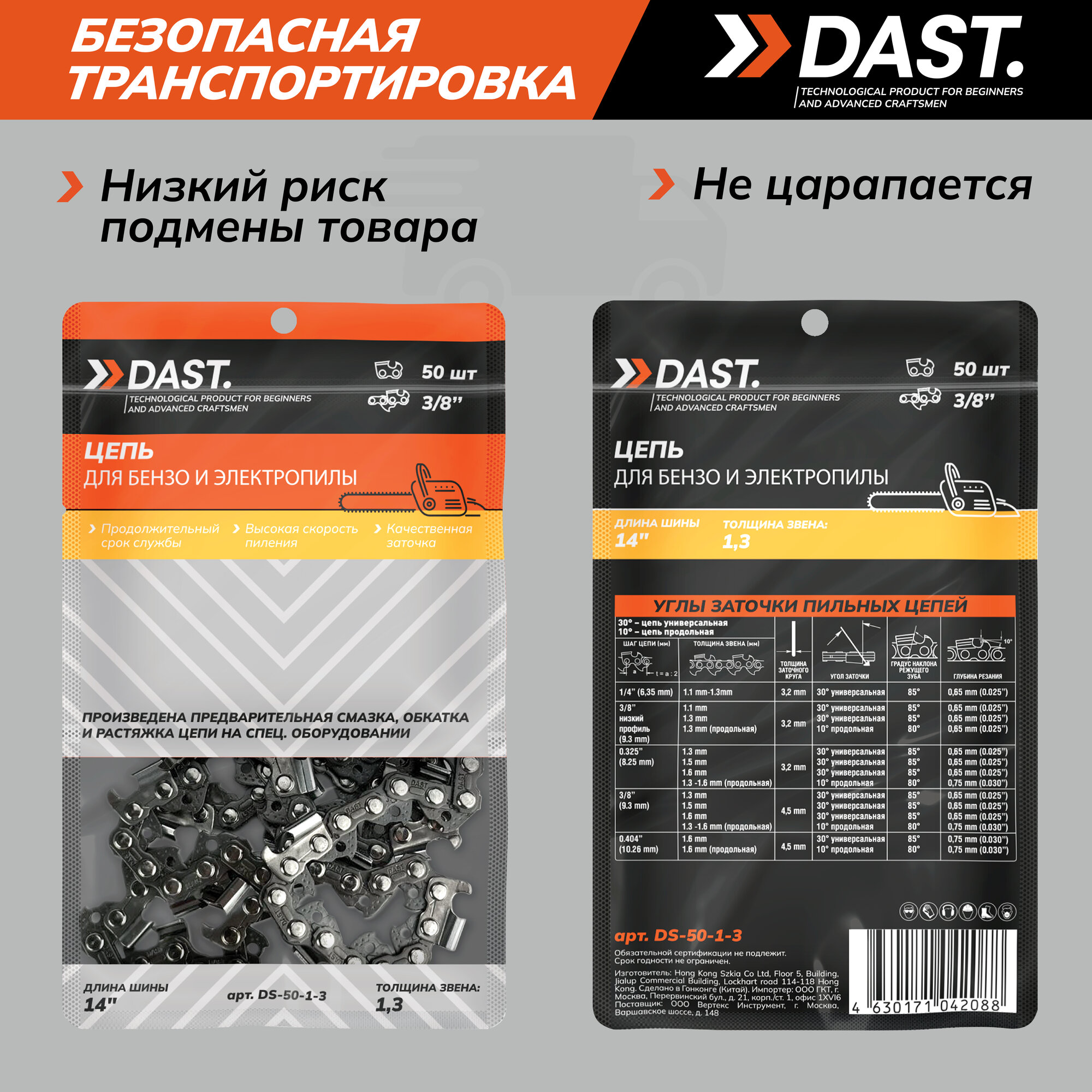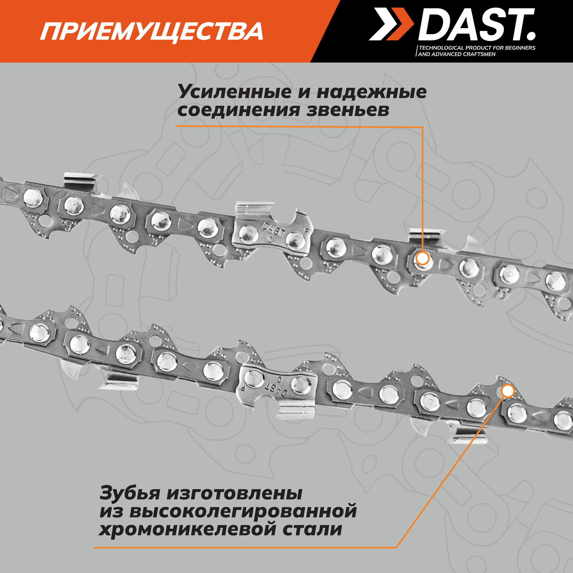 Пильная цепь DAST 0.325"-1.3-64 звеньев, шаг 0.325", паз 1.3 мм, для шины 15 дюймов