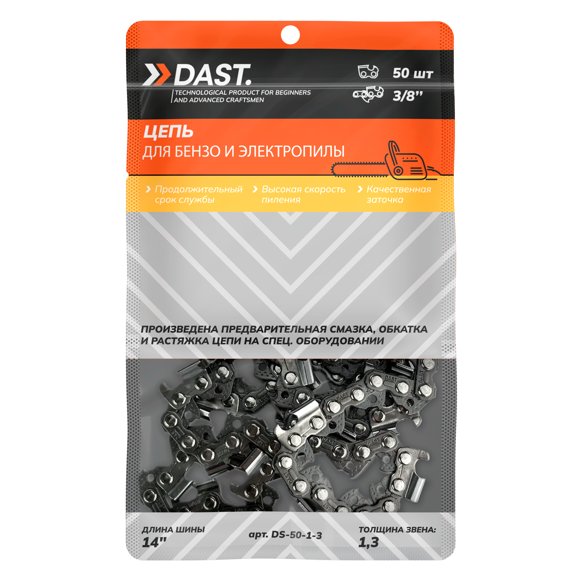 Пильная цепь 3/8"-1,3-50 для бензопил 14", шаг 3/8", паз 1,3 мм, 50 звеньев интересное: