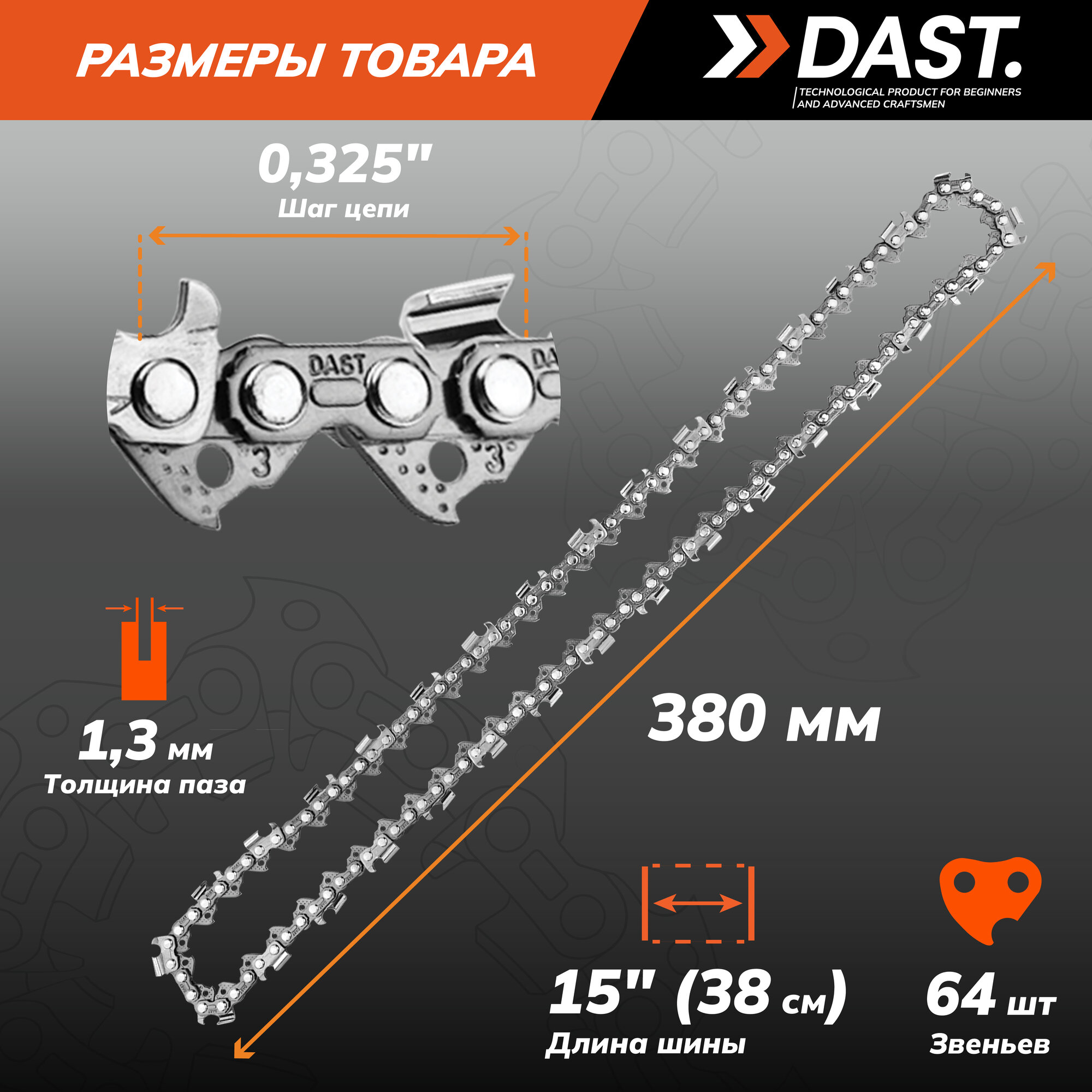Пильная цепь DAST 0.325"-1.3-64 звеньев, шаг 0.325", паз 1.3 мм, для шины 15 дюймов интересное:
