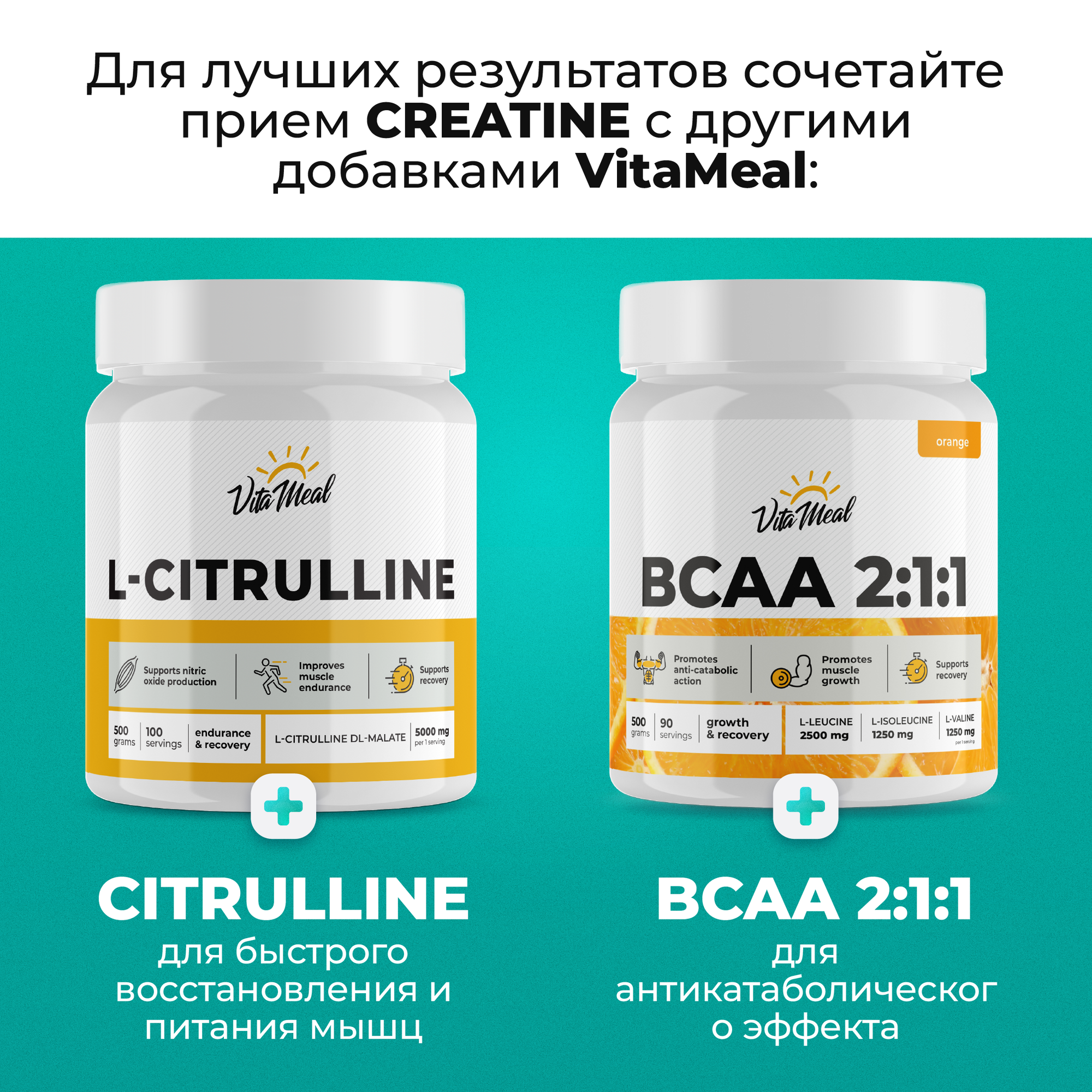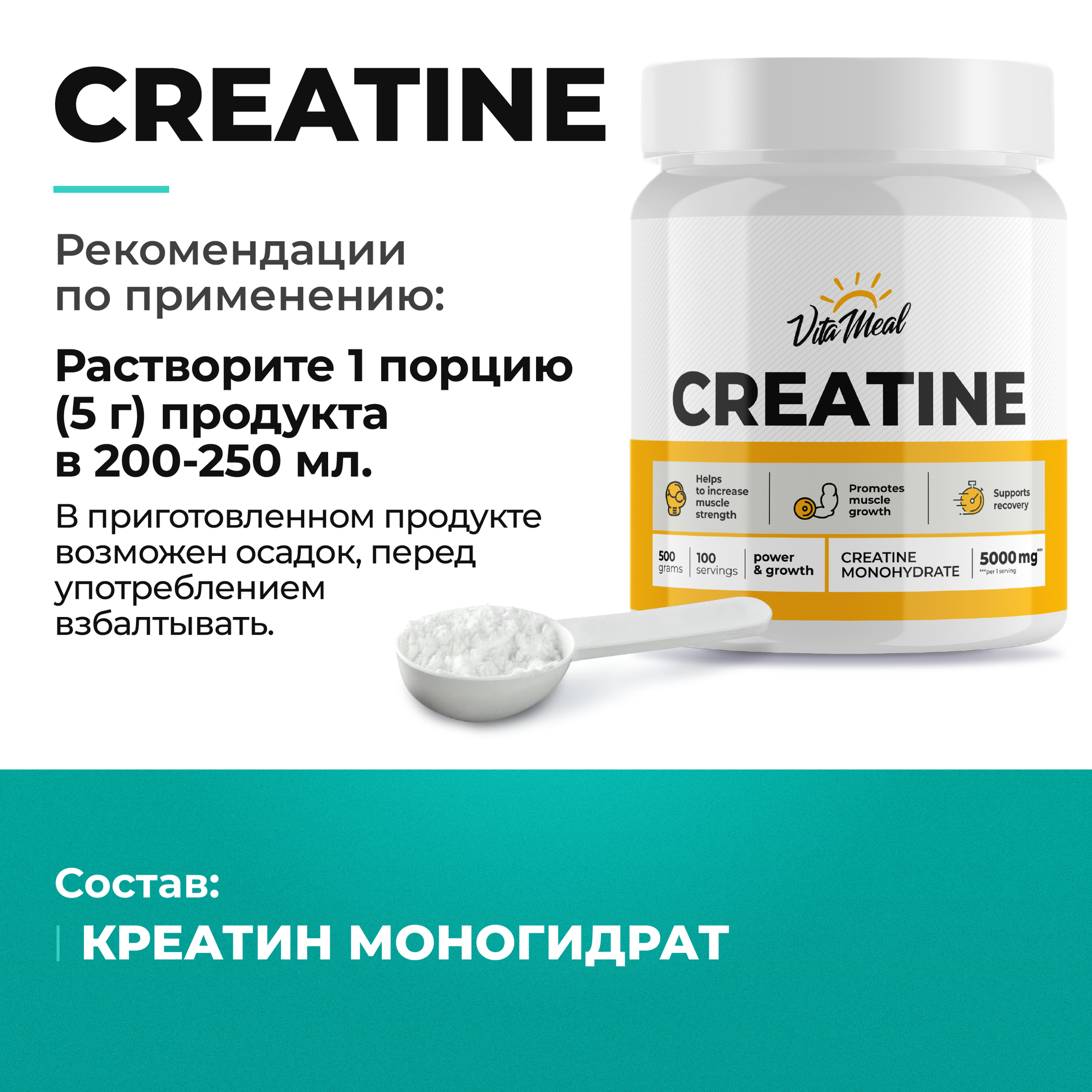 Креатин моногидрат порошок Creatine Monohydrate VitaMeal 500 г, Без вкуса