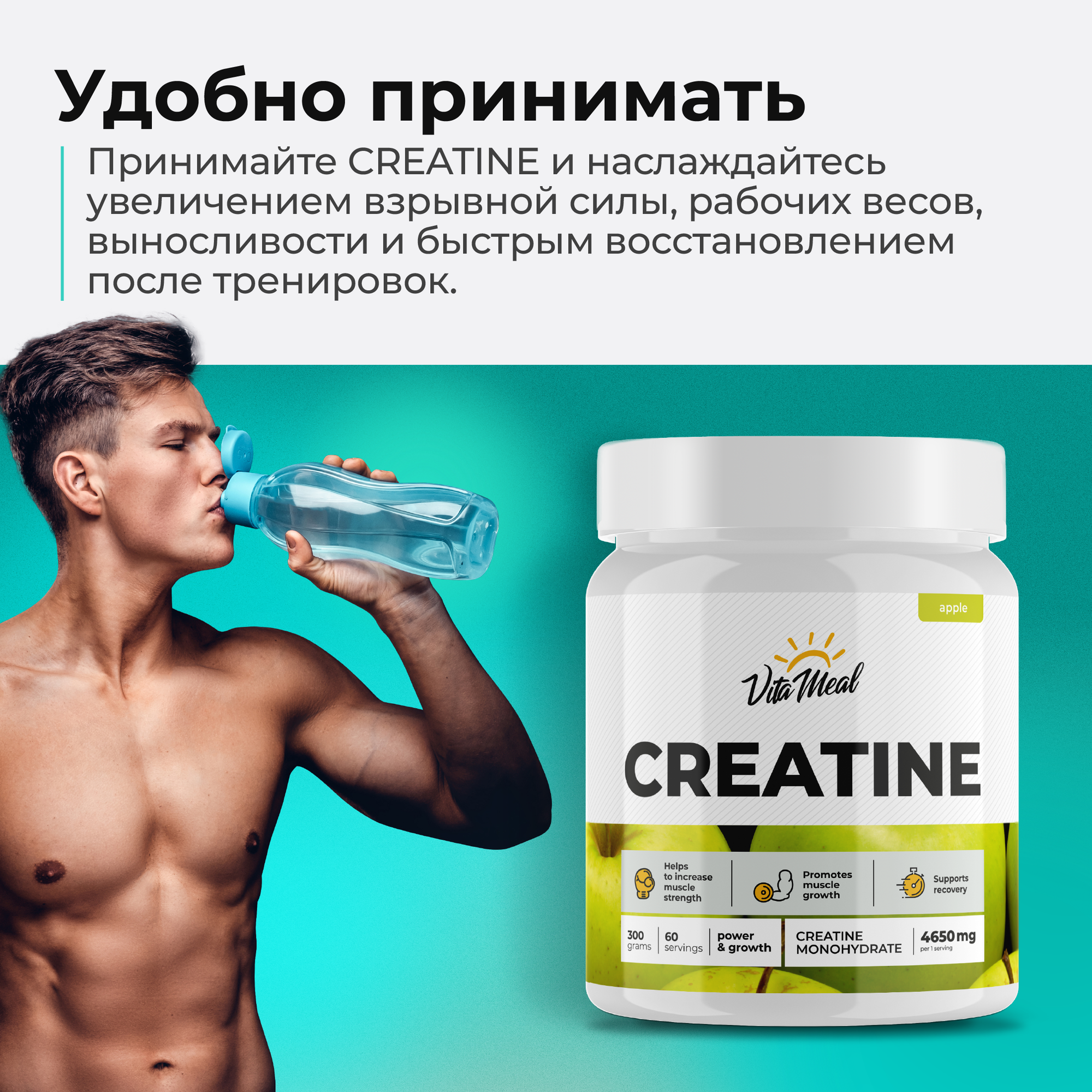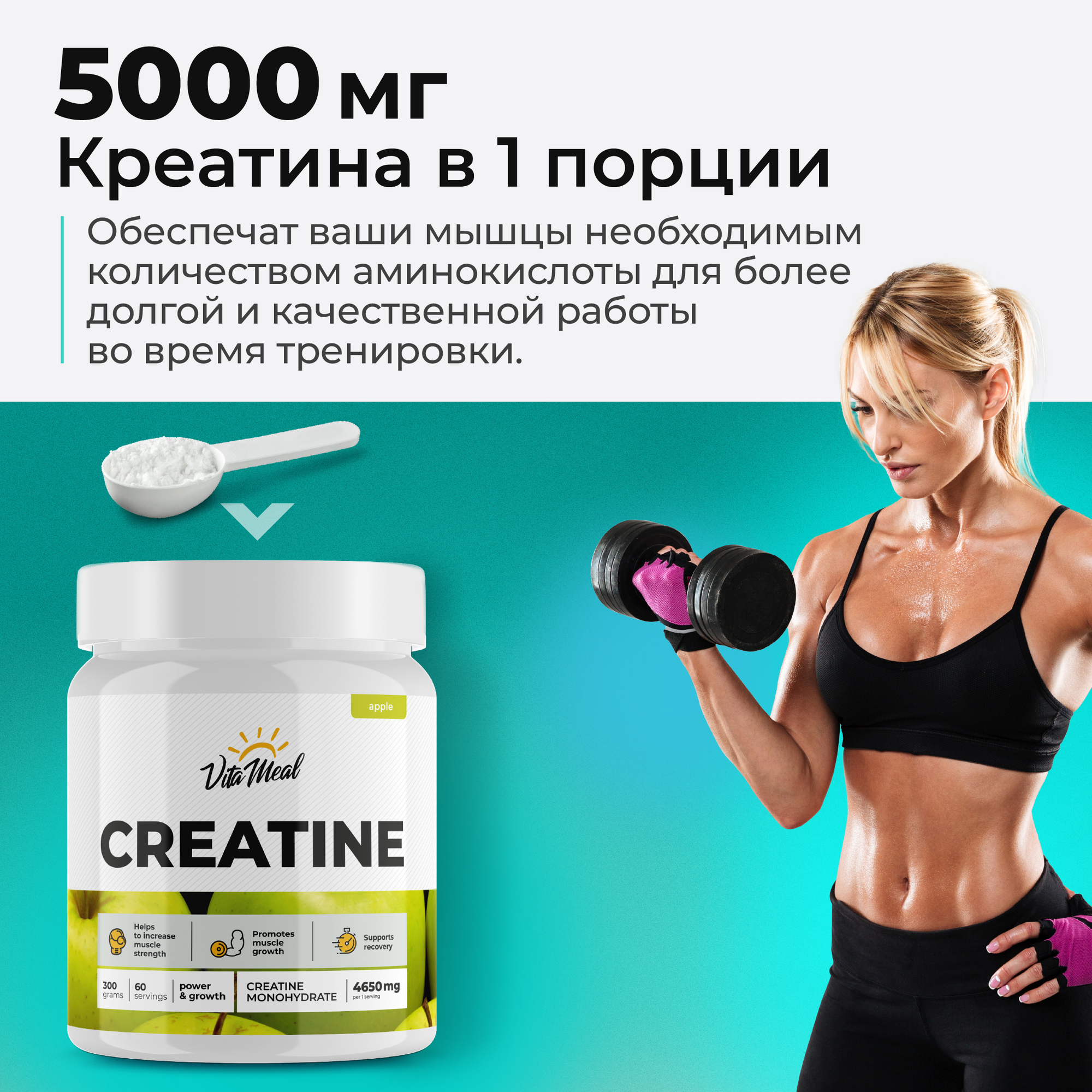 Креатин моногидрат порошок Creatine Monohydrate VitaMeal 300 г, Яблоко