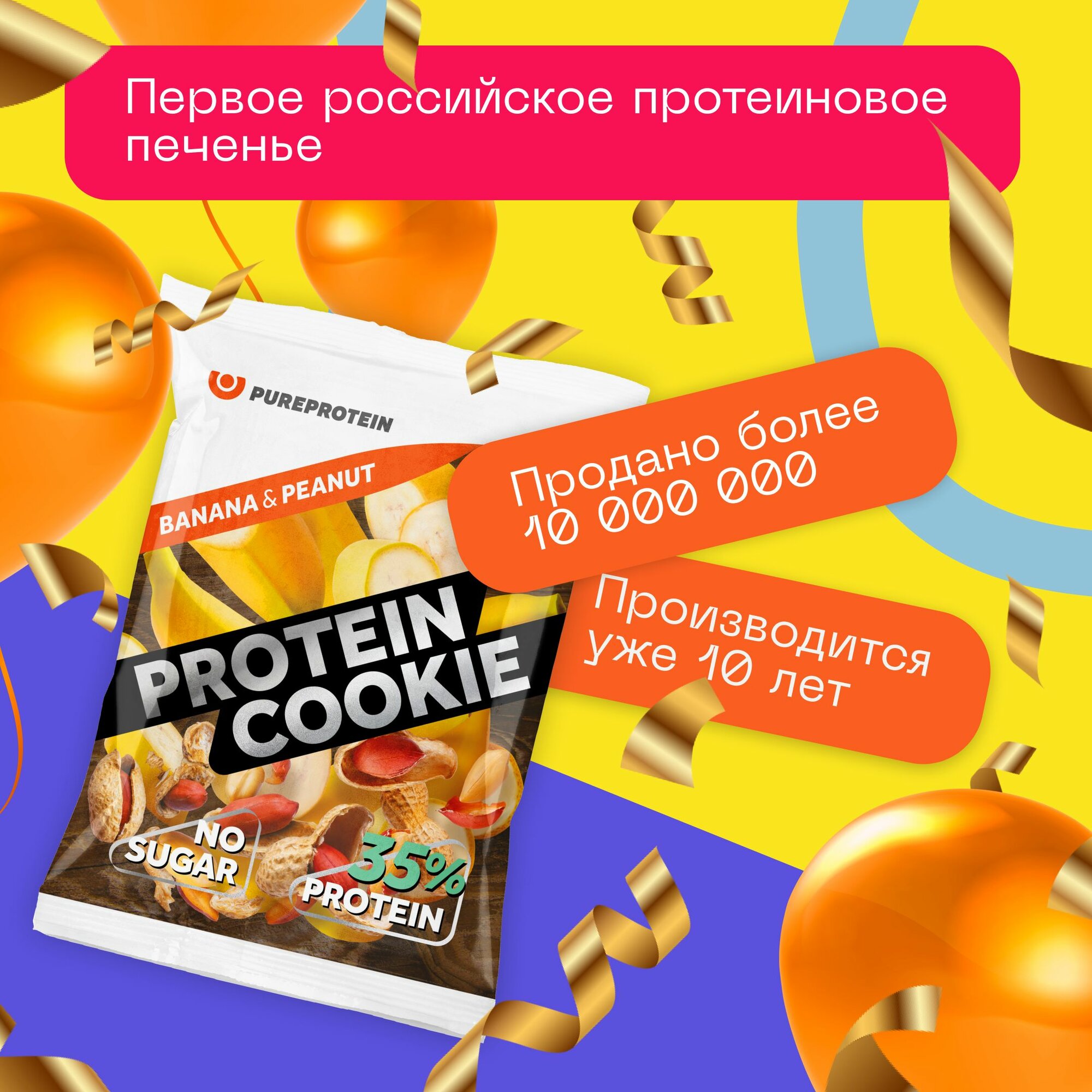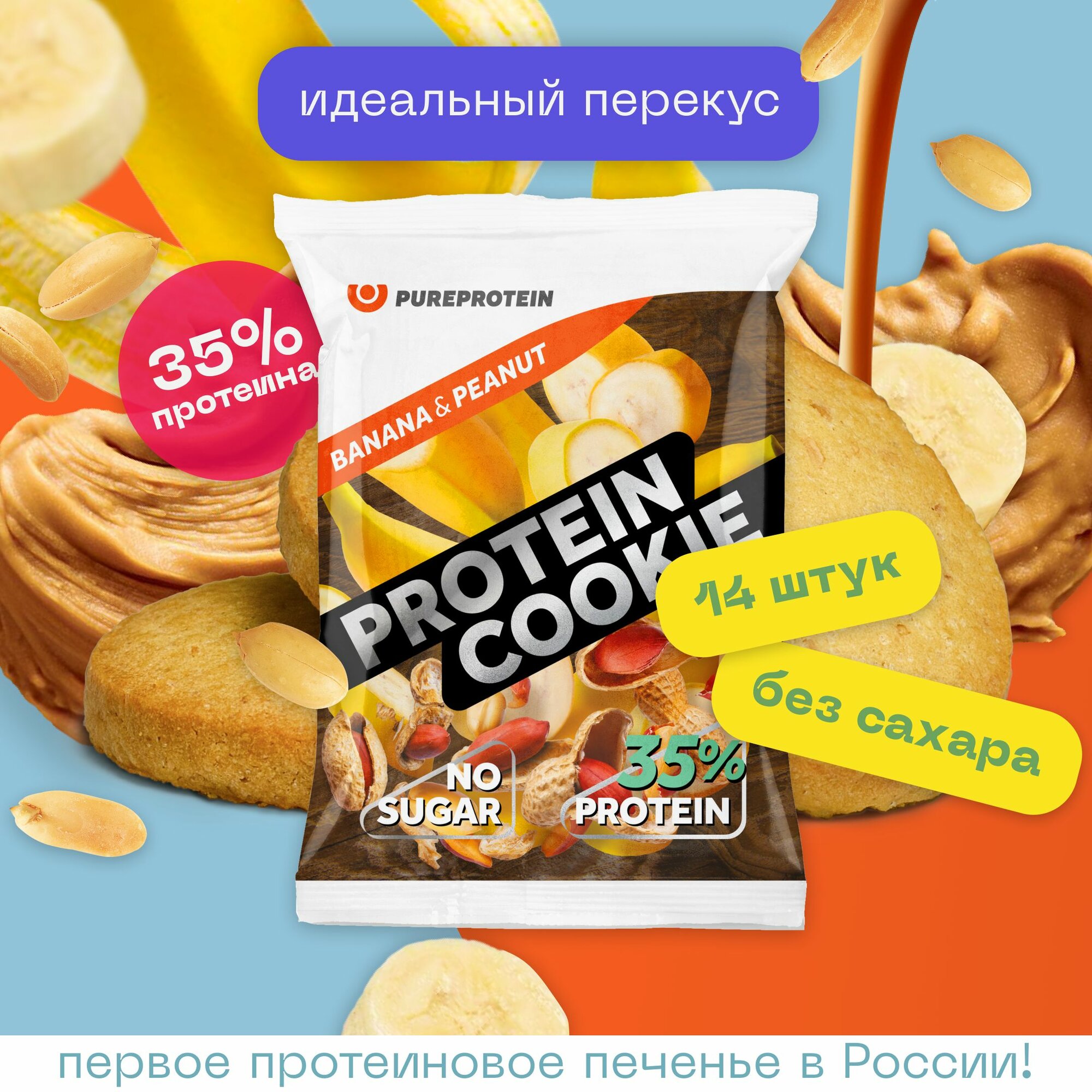Купить Протеиновое печенье PureProtein 35% белка, банан и арахис, без сахара, 14шт х 40г