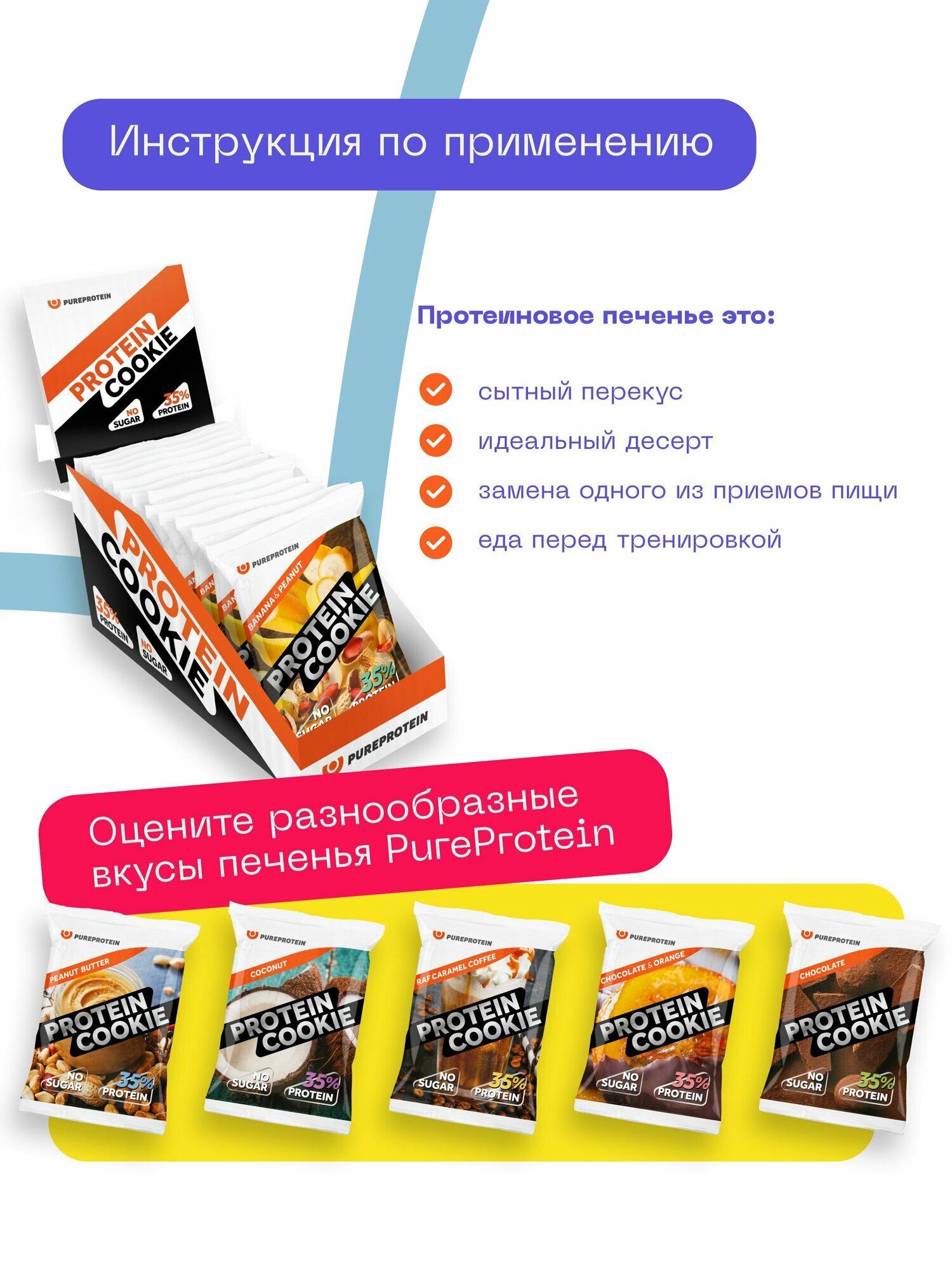 Ниже Вы можете прочитать отзывы на Протеиновое печенье PureProtein 35% белка, банан и арахис, без сахара, 14шт х 40г, ознакомится с подробными характеристиками, посмотреть интересные обзоры и фотографии на Протеиновое печенье PureProtein 35% белка, банан и арахис, без сахара, 14шт х 40г.