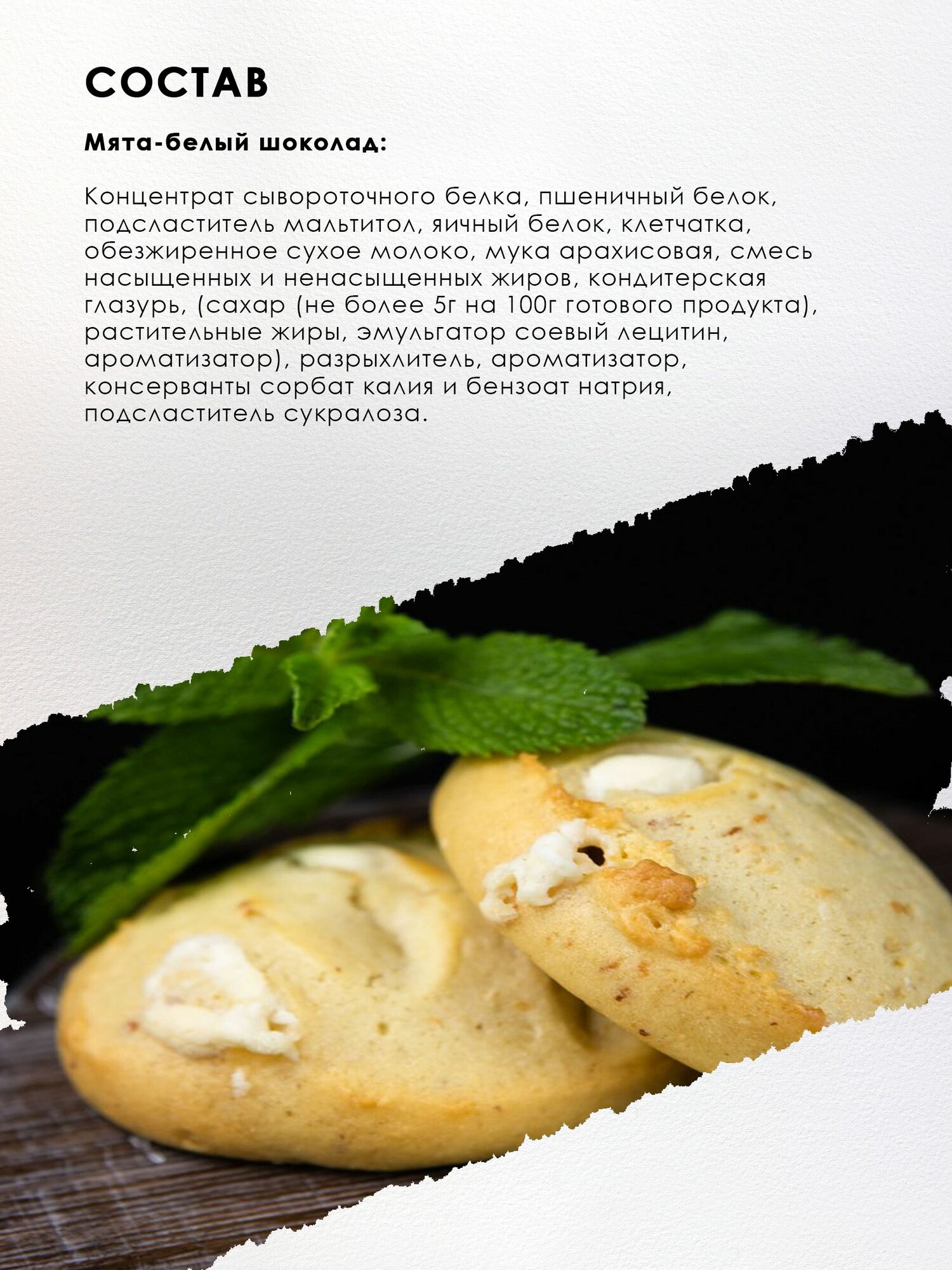 Печенье протеиновое 20% белка Мята-белый шоколад Fuze, десерт без сахара ПП сладость, спортивное печенье 9 шт*40г