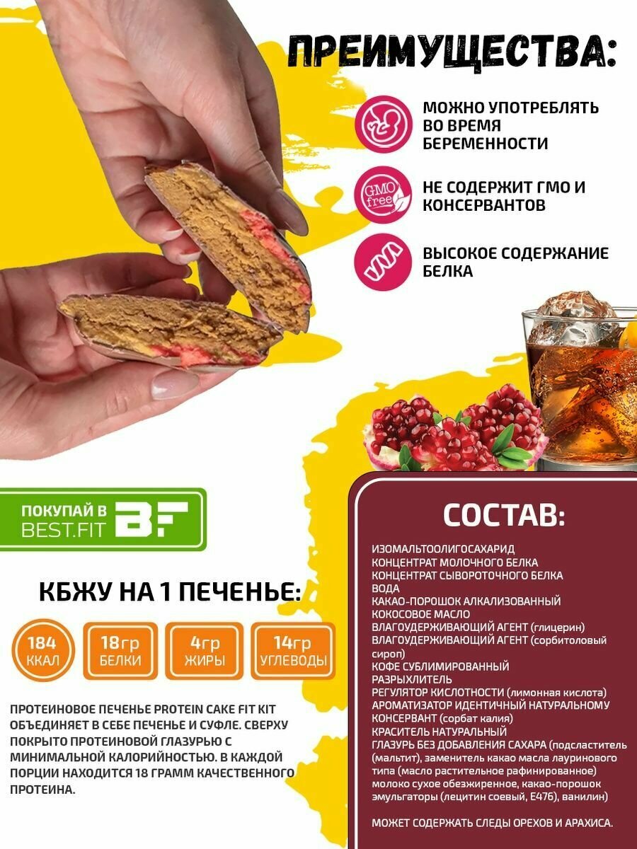 Fit Kit, TWISTED Protein Cake, 1шт x 70г (Ром-Гранат) / Протеиновое печенье с суфле без сахара и муки Фит Кит интересное: