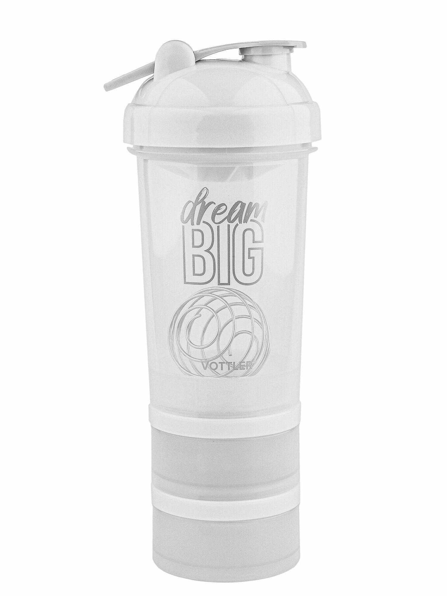 Купить Шейкер спортивный 500 мл с отсеком для протеина VOTTLER с венчиком, белый