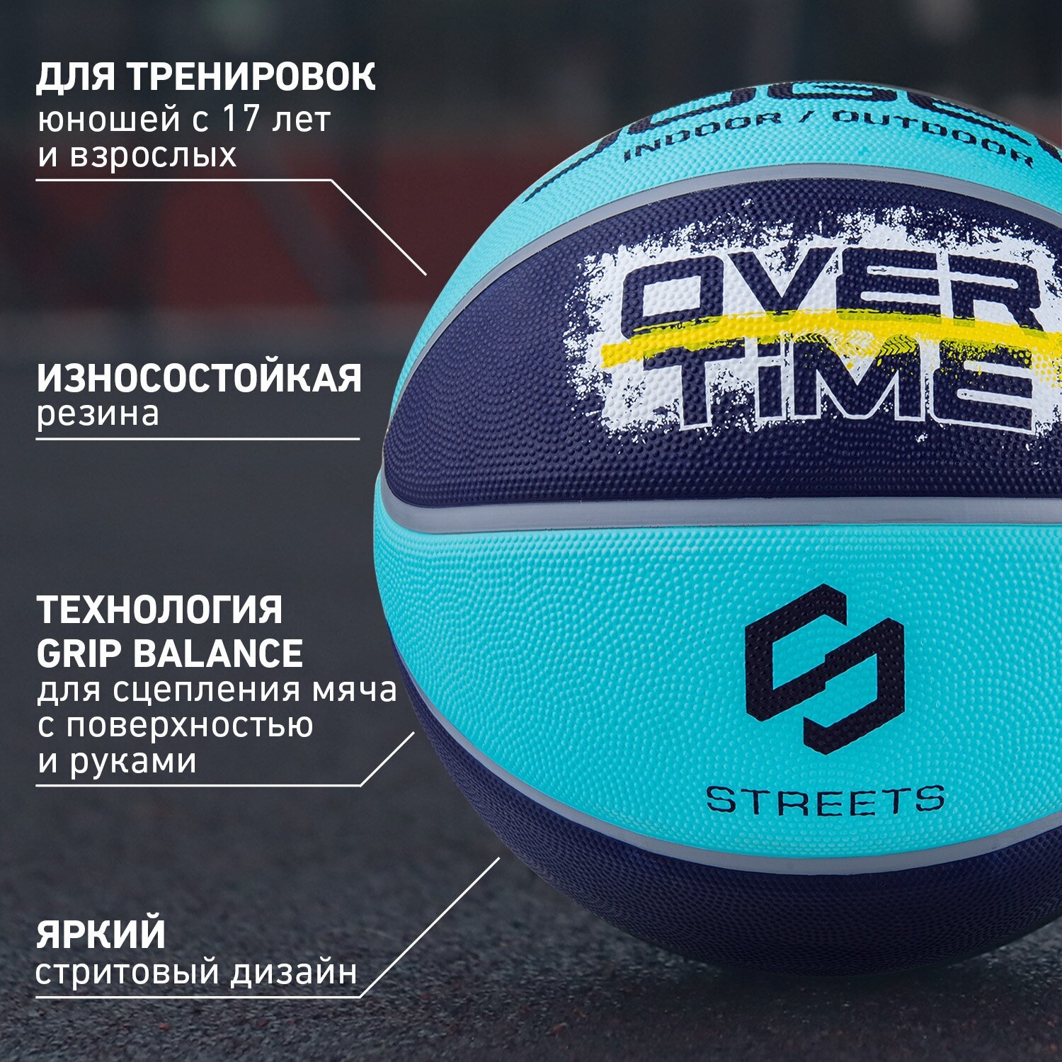 Баскетбольный мяч Jogel OVERTIME для уличного баскетбола, размер 7