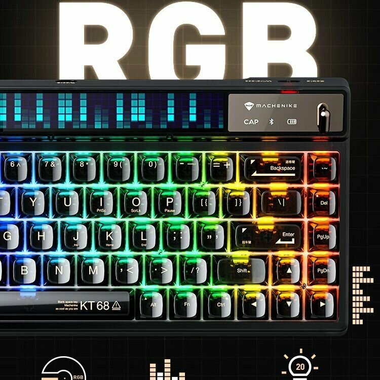 MACHENIKE KT68 Pro Ослепительная Трехрежимная беспроводная механическая клавиатура, Русская раскладка, черная, Clicky Kalih Autumn