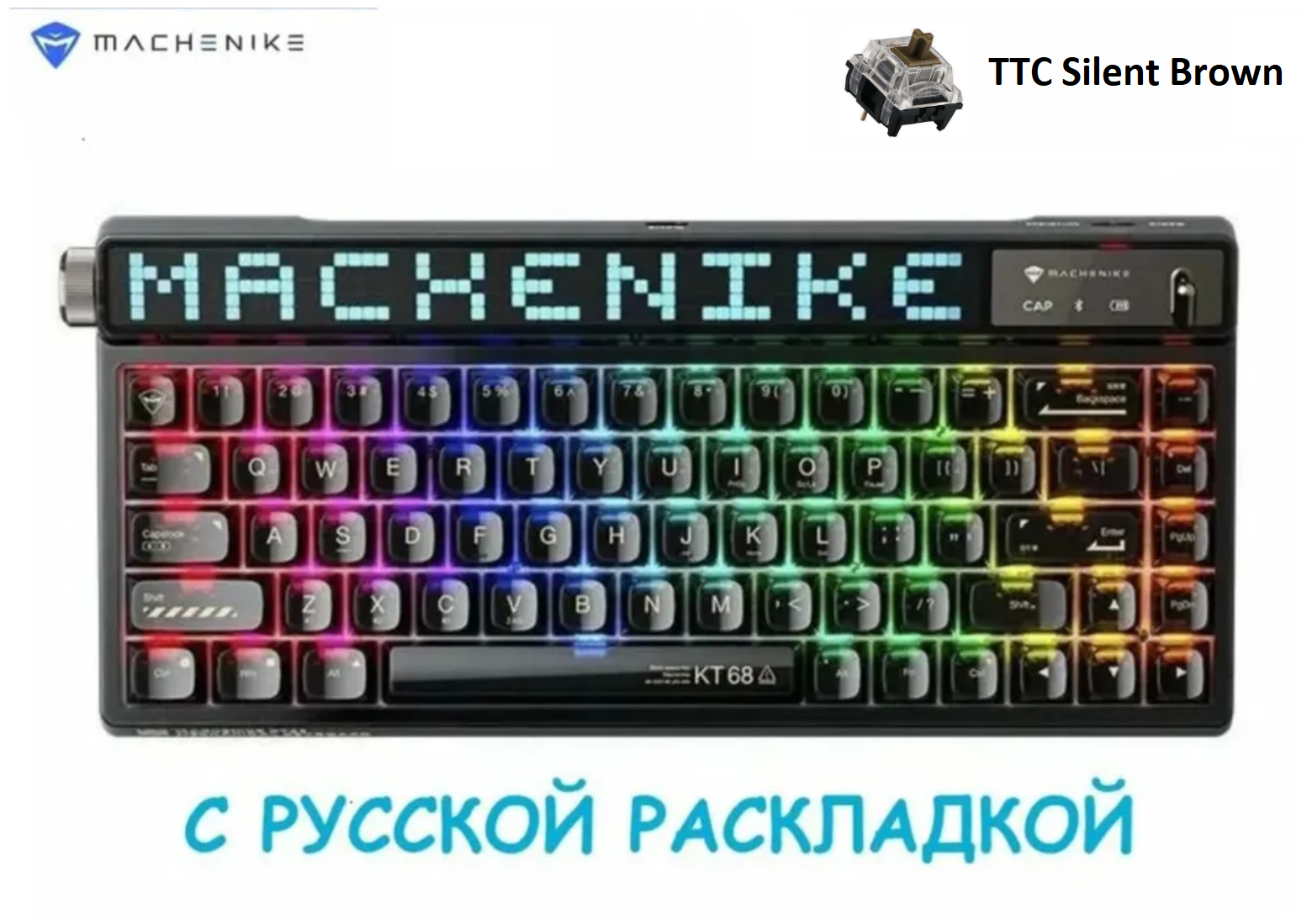 СохранитьMACHENIKE KT68 Pro Игровая механическая беспроводная клавиатура. Черная. Keychron TTC Silent Brown. Русская раскладка/Английская раскладка интересное: