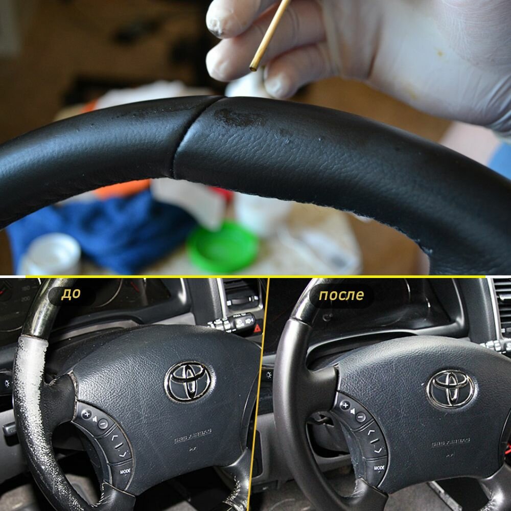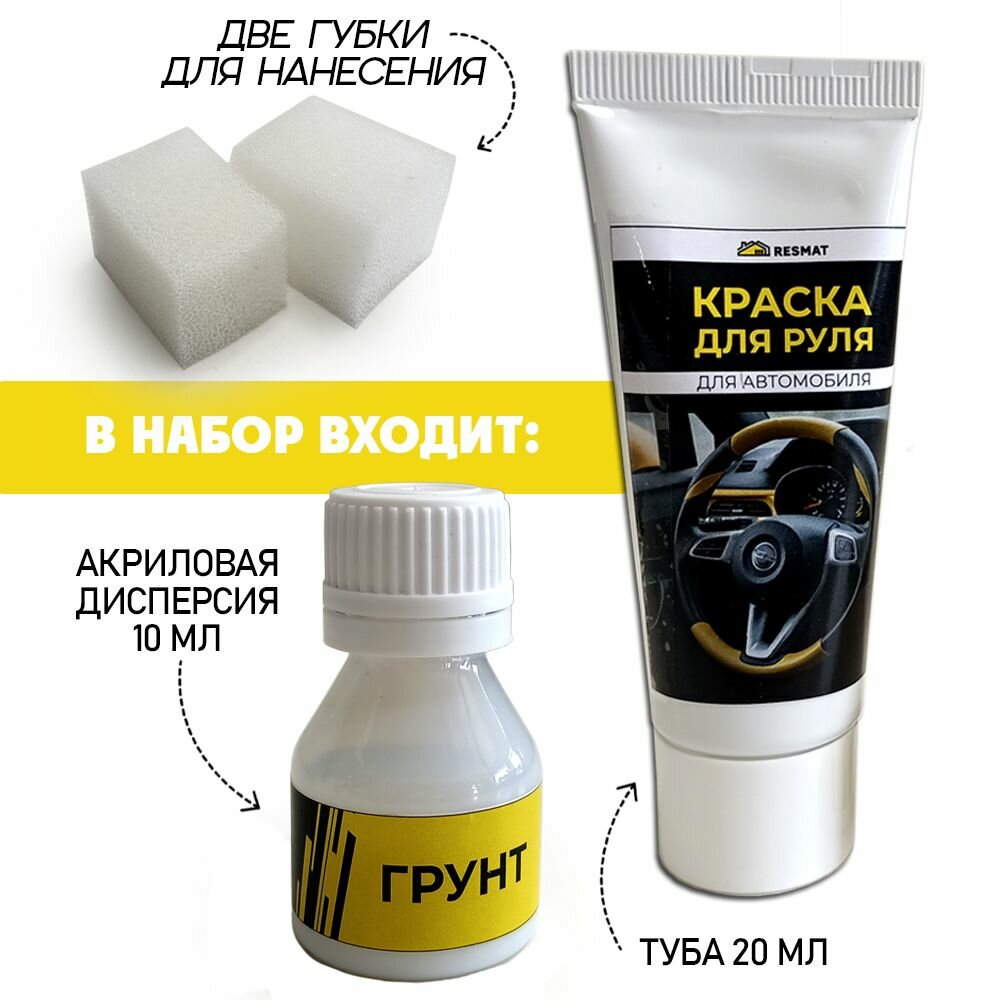 Набор Resmat, для ремонта руля и кресел, краска, грунт, 2 губки. Цвет - черный интересное:
