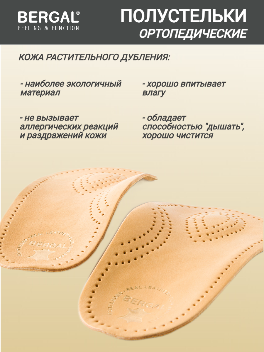 Полустельки для обуви BERGAL Perfect Plus D размер 42 стельки ортопедические женские кожаные с супинатором при плоскостопии