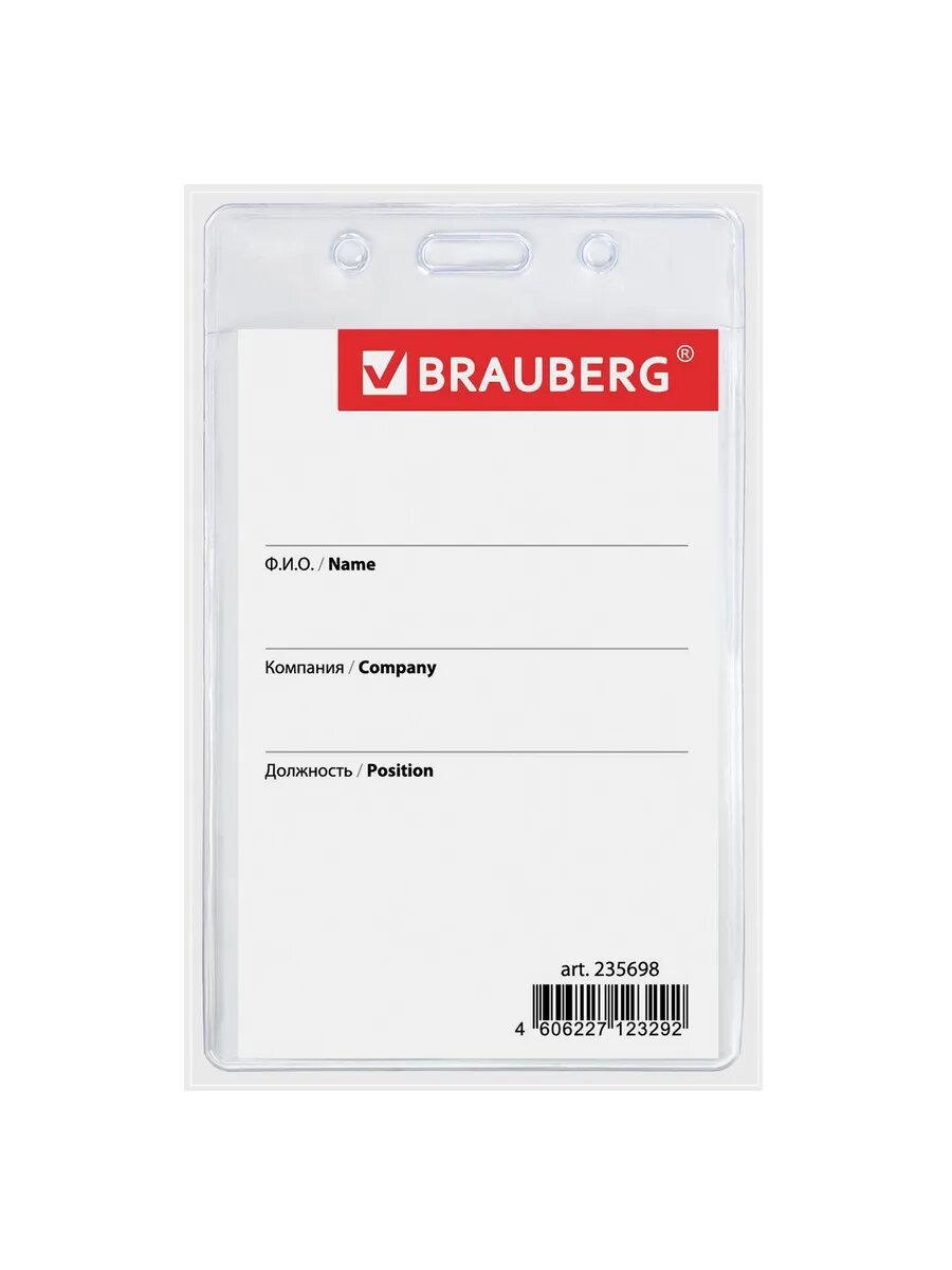 Бейдж вертикальный (90х60 мм), на черной ленте 45 см, BRAUBERG, 235702