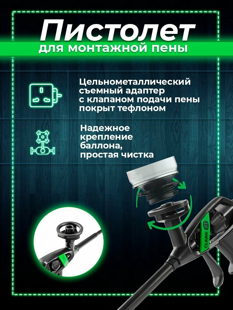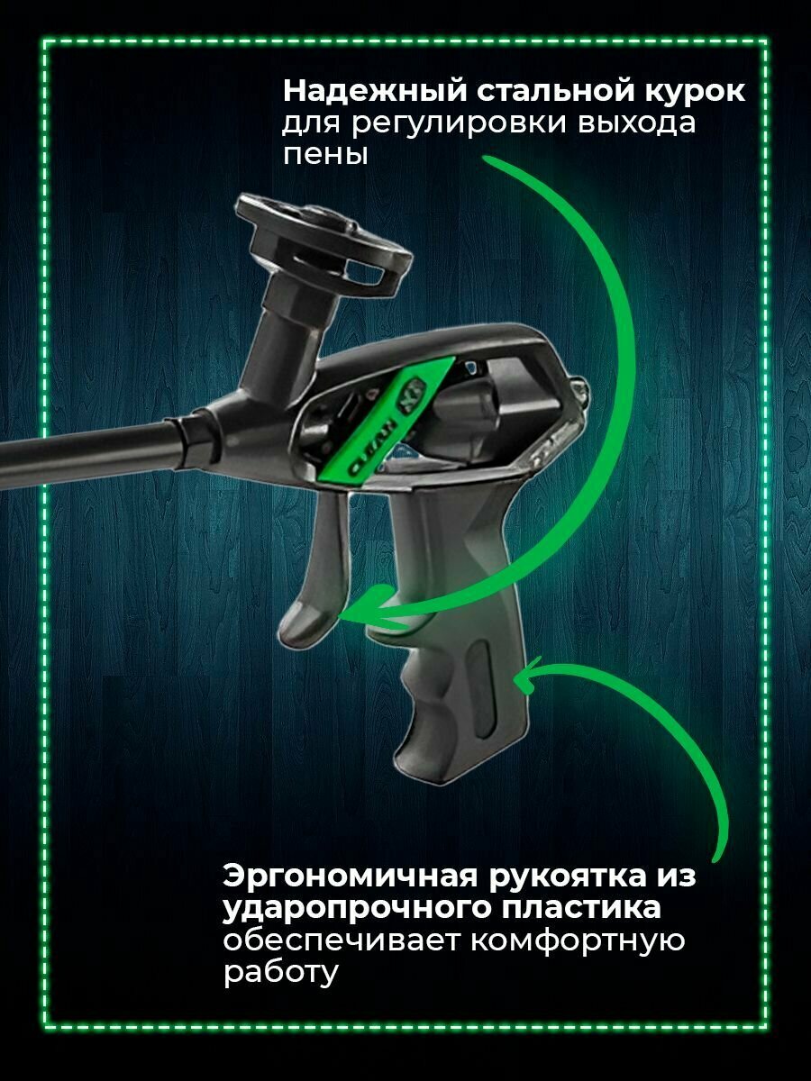 Усиленный пистолет для монтажной пены Fomeron тефлоновое покрытие иглы и кольца-адаптера clean хт 590008