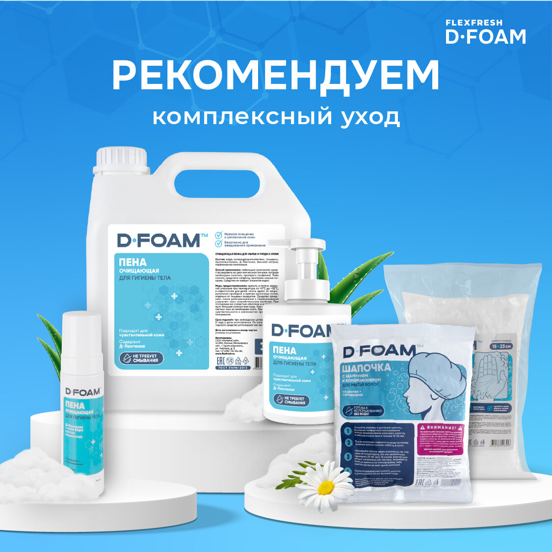 Очищающая пена Flexfresh D-Foam для ухода за лежачими больными, дозатор 500мл