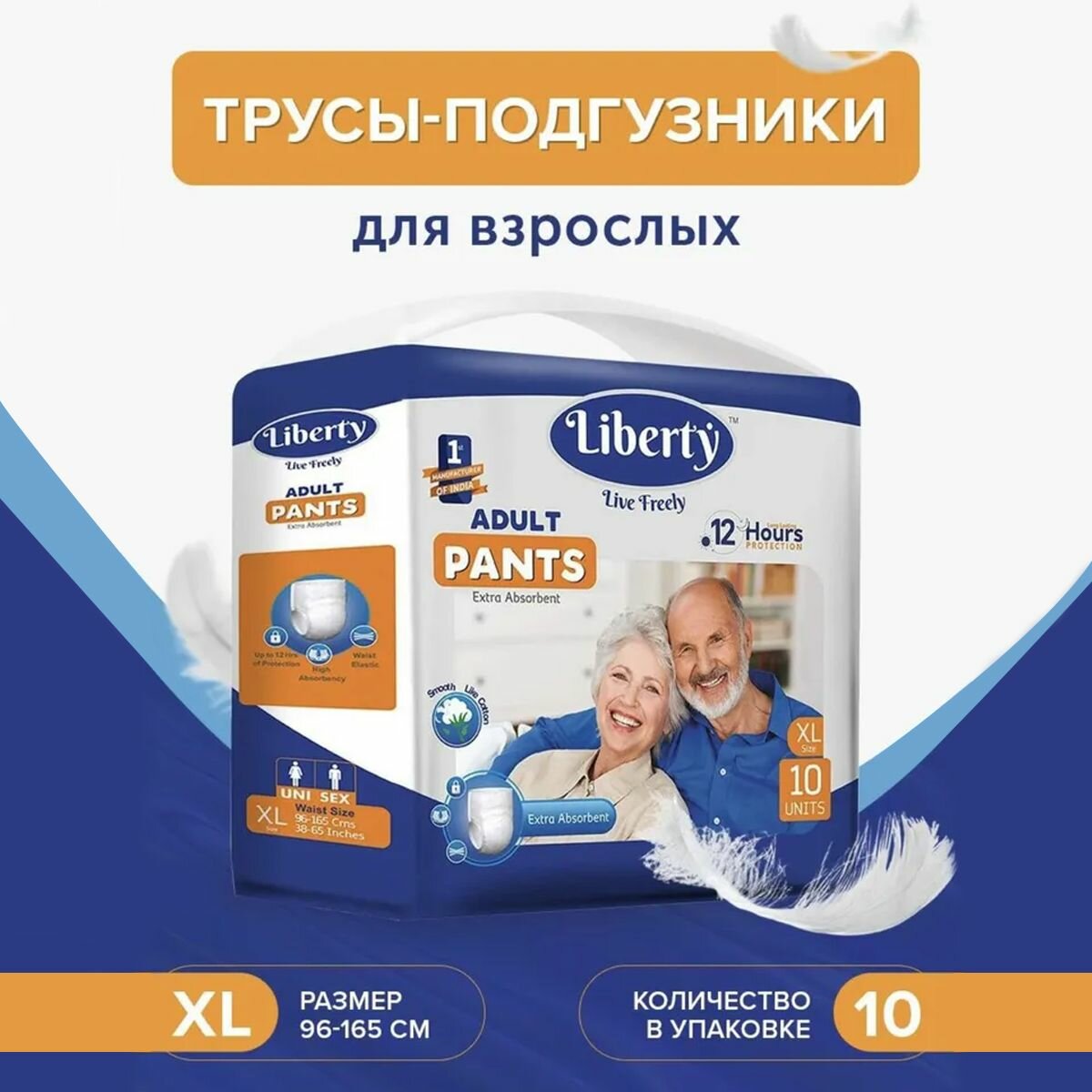 Подгузники-трусики для взрослых Liberty Premium Pants размеры XL (объем талии 96-165 см), 10 шт.